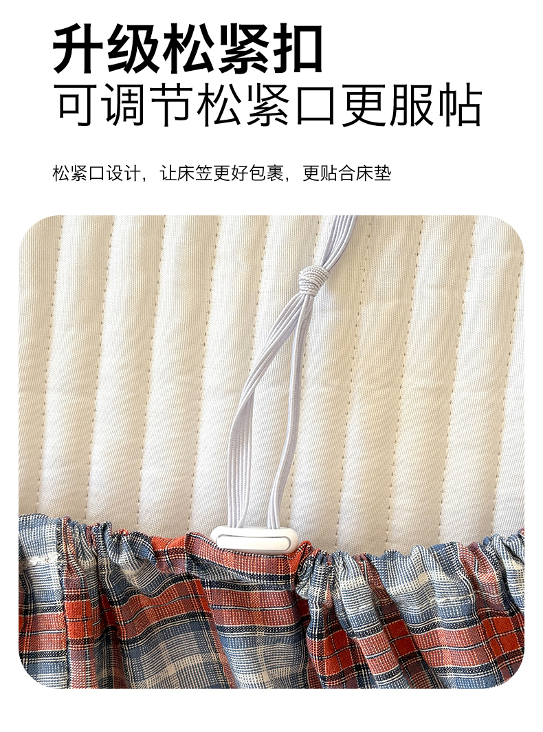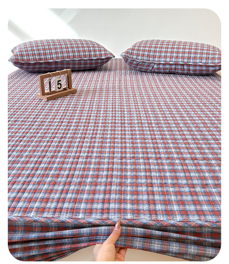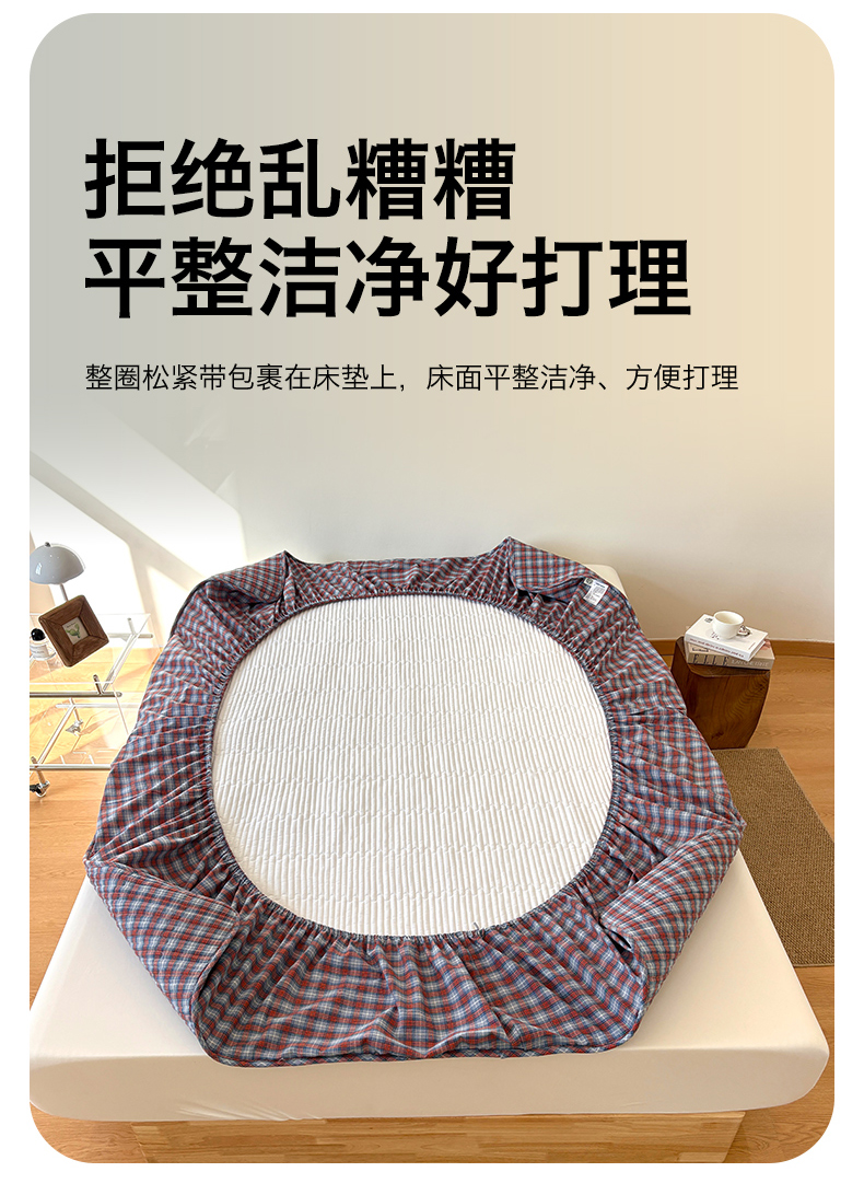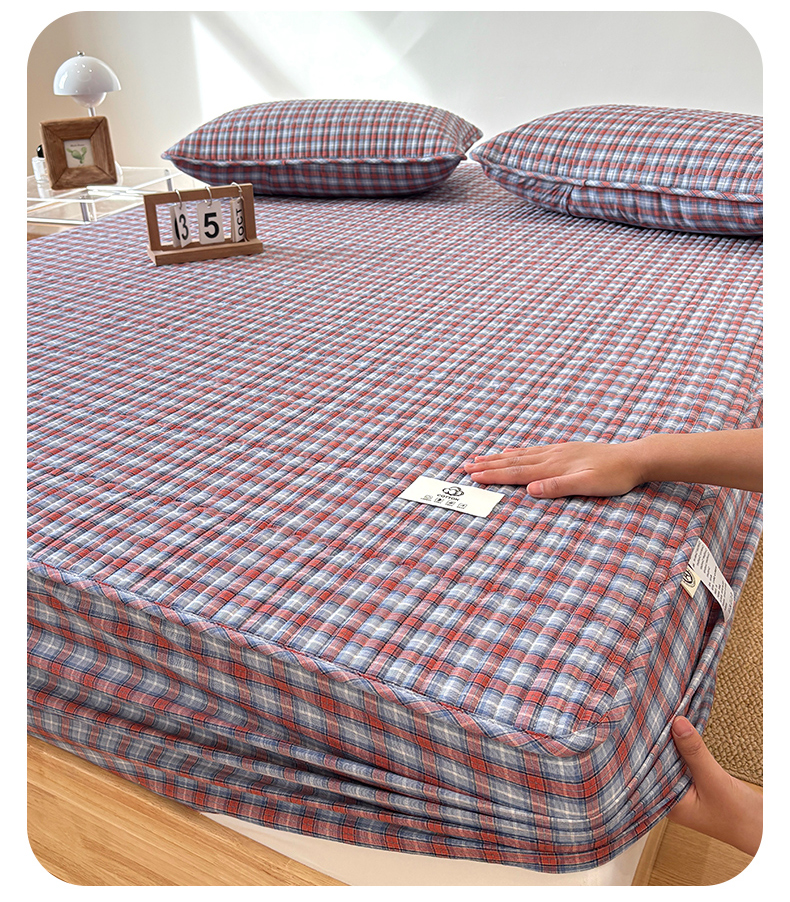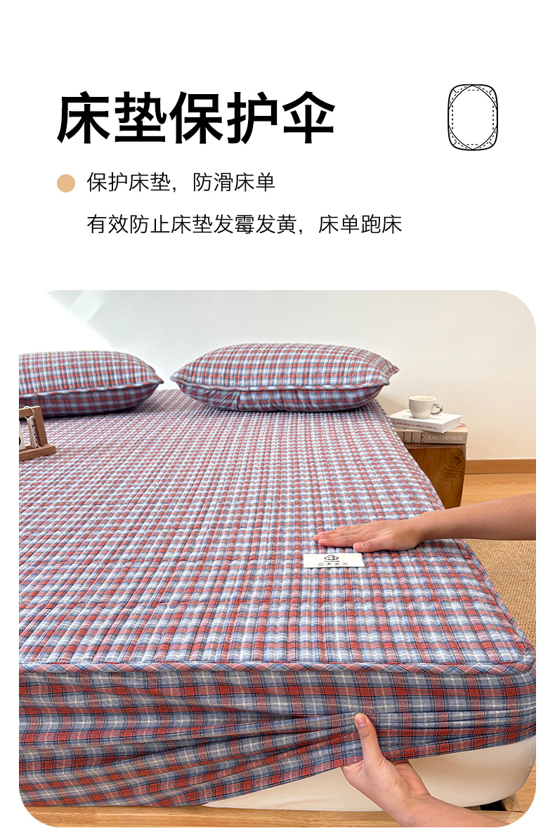 居眠 2025新款格子全棉纯棉水洗棉棉花单床笠床笠单件单品床笠 夹棉款-瑞土兰