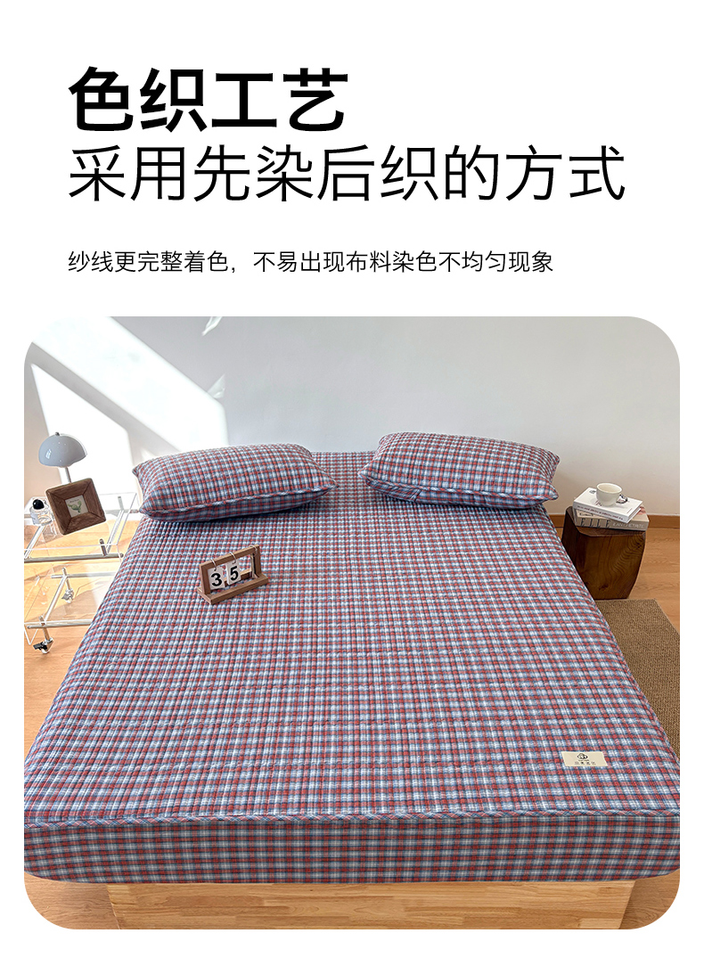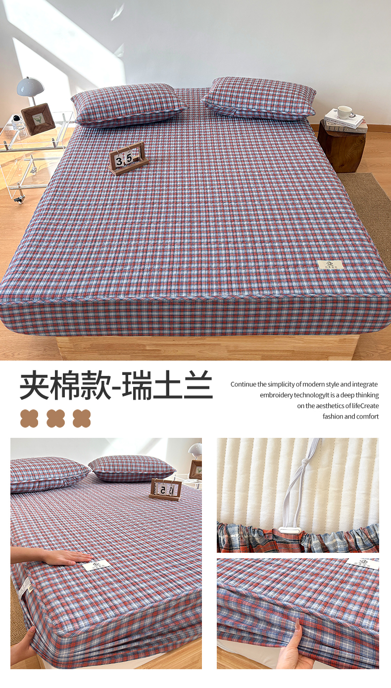 • 91家纺网 家纺一手货源 找家纺 居眠 2025新款格子全棉纯棉水洗棉棉花单床笠床笠单件单品床笠 夹棉款-瑞土兰