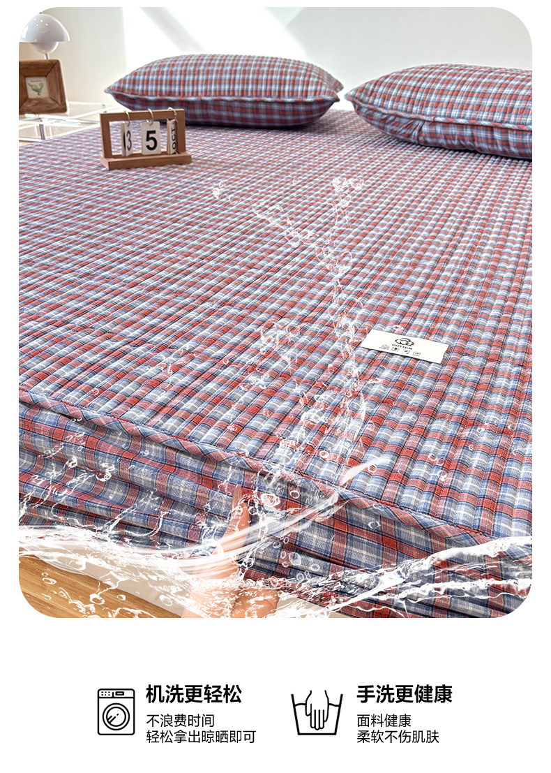 • 91家纺网 家纺一手货源 找家纺 (总)居眠 2026新款全棉色织水洗棉格子夹棉棉花床笠,夹棉款-摩登蓝卡条,夹棉款-摩登绿卡条