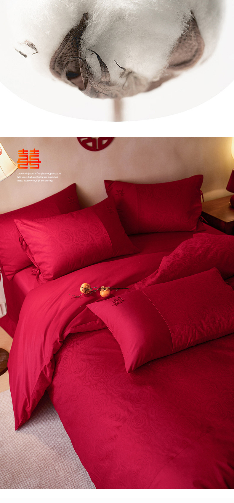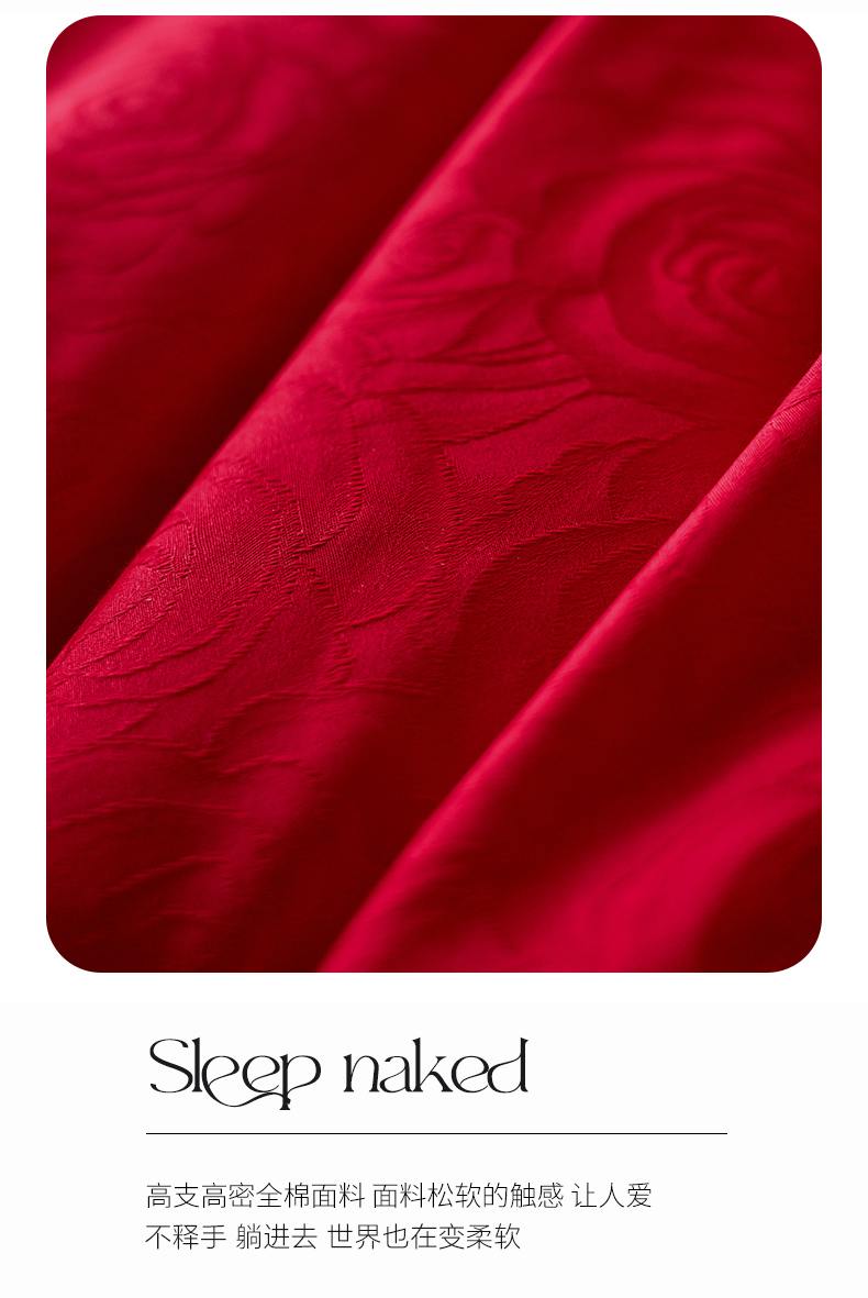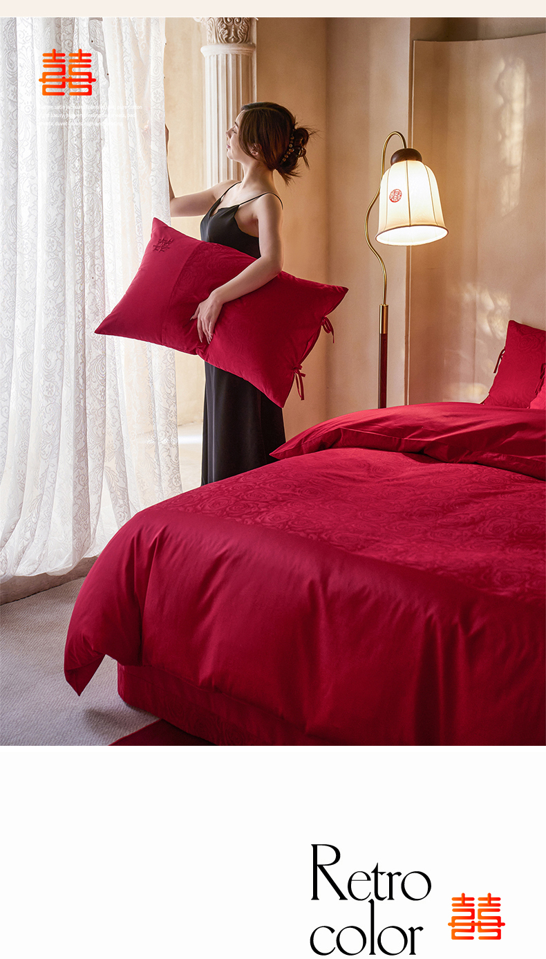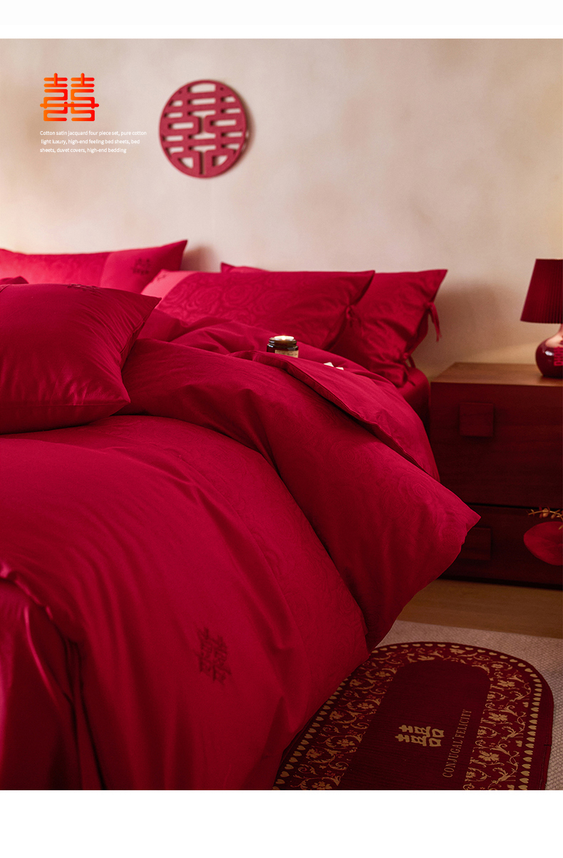 (总)红番天婚庆 2025新款全棉提花全棉婚庆刺绣四件套-午后花房-汐云红,午后花房-汐云红