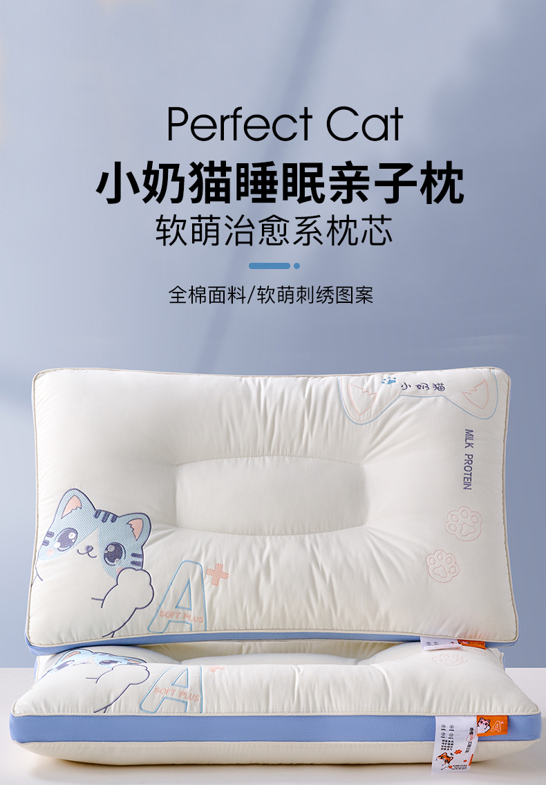 商品名称:鼎晟纺 2025新款全棉小奶猫亲子枕儿童学生枕头成人枕芯 粉色小奶猫成人款-单只装