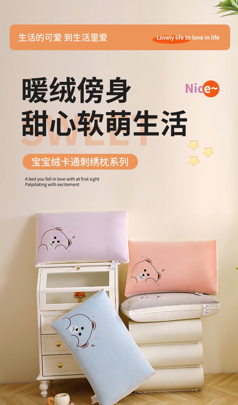 商品名称:(总)佳尚枕芯 2025新款新品宝宝绒可爱卡通枕枕头枕芯-顽皮熊