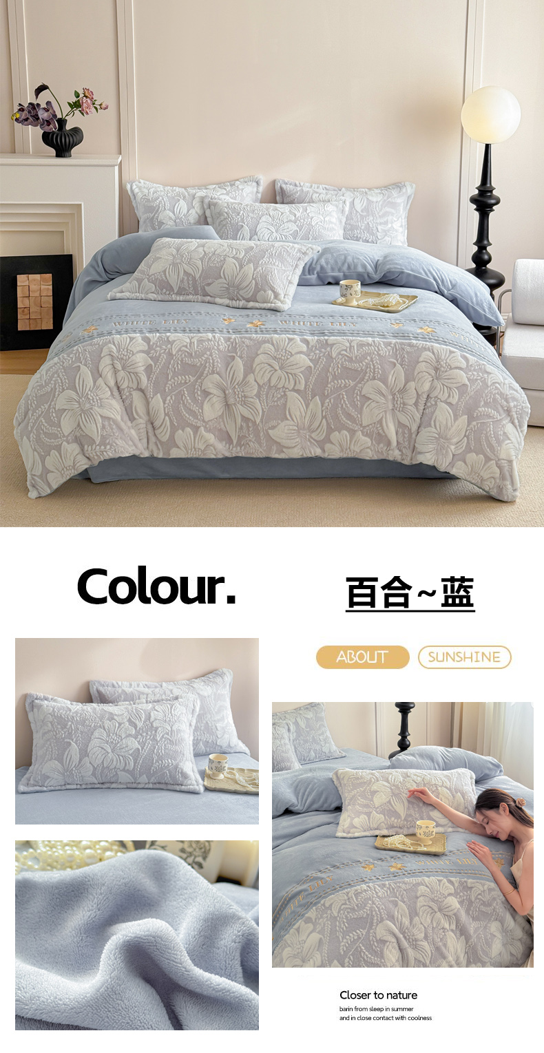 商品名称:(总)米可 2025新款兔毛烂花牛奶绒绣花四件套
