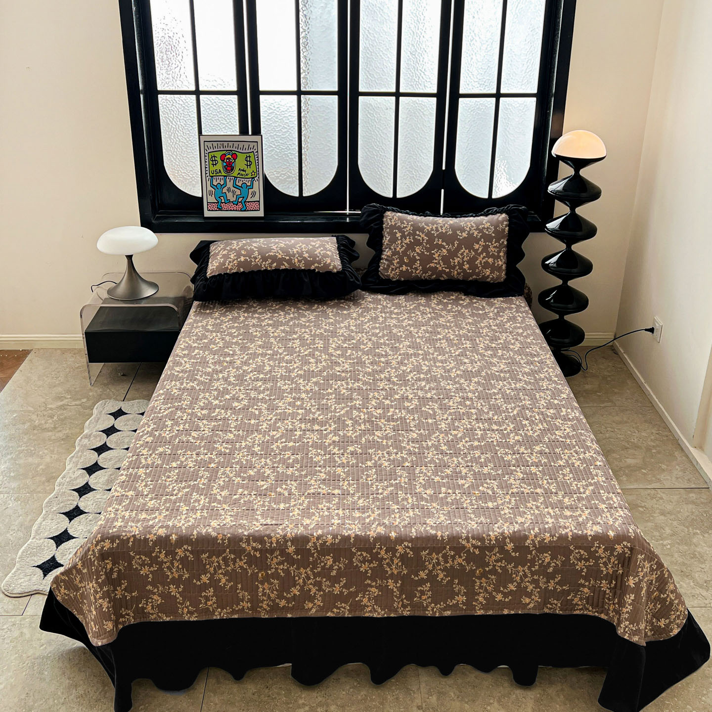 富米莱单品馆 2026新款法式赫本风大花边A类古法仿棉云感纱单品床盖 花语玫瑰