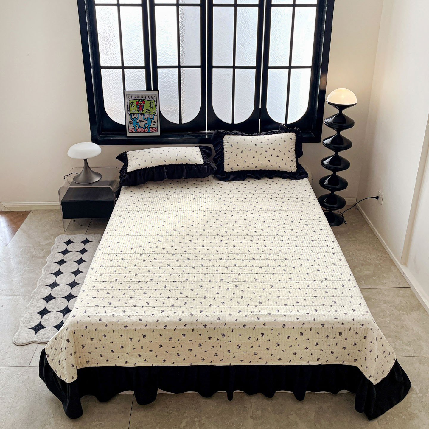 商品名称:富米莱单品馆 2026新款法式赫本风大花边A类古法仿棉云感纱单品床盖 花语玫瑰
