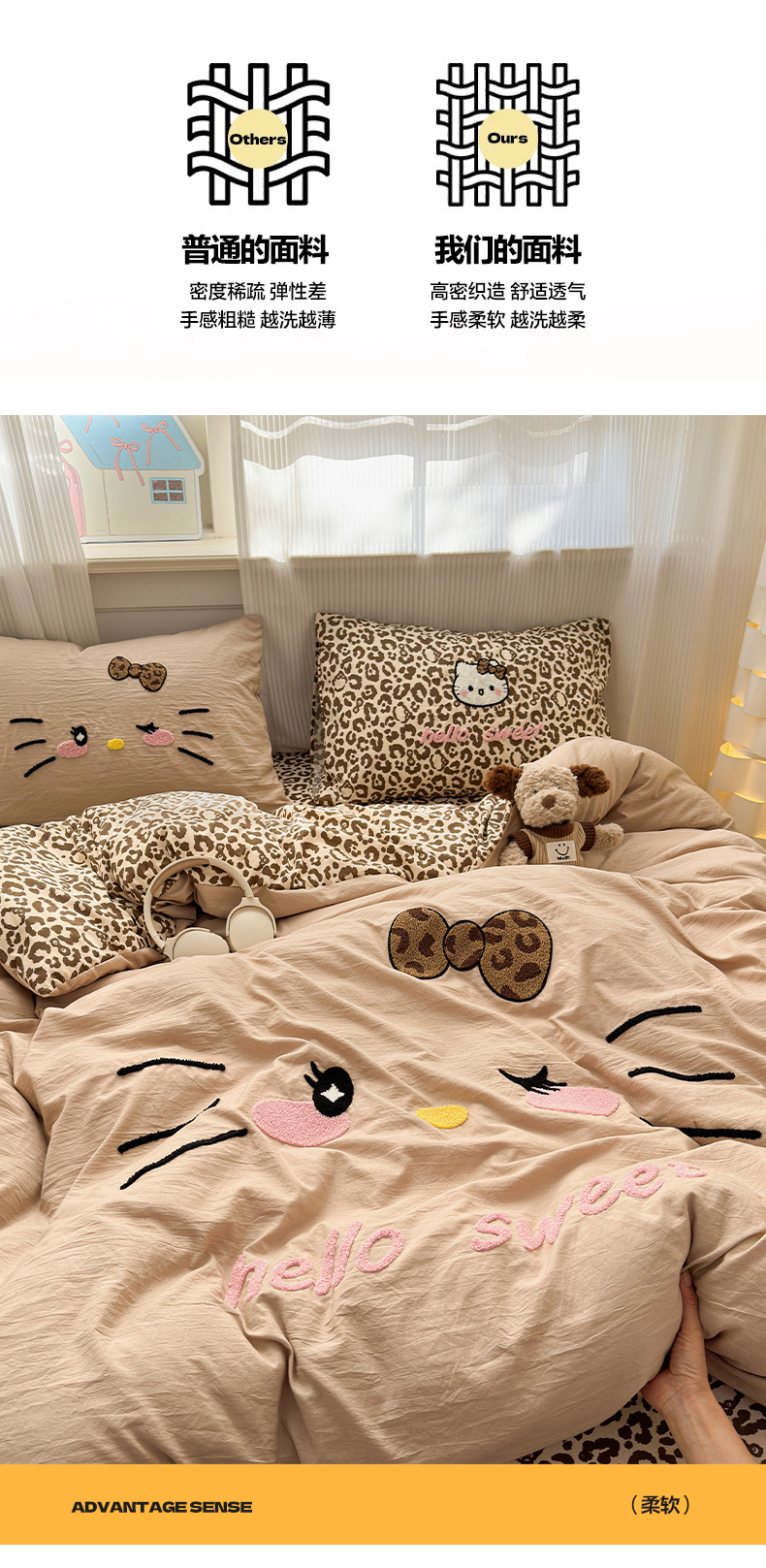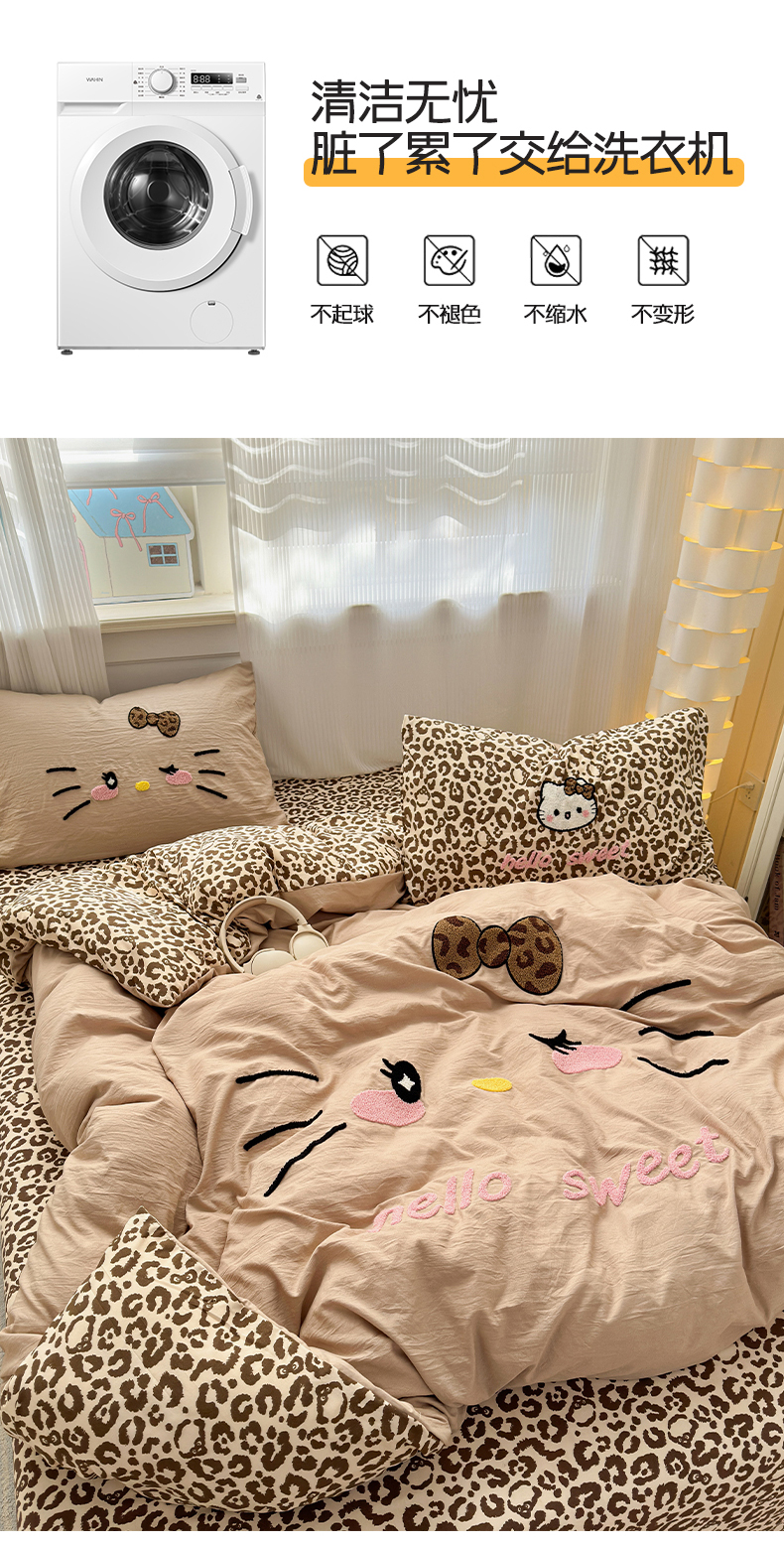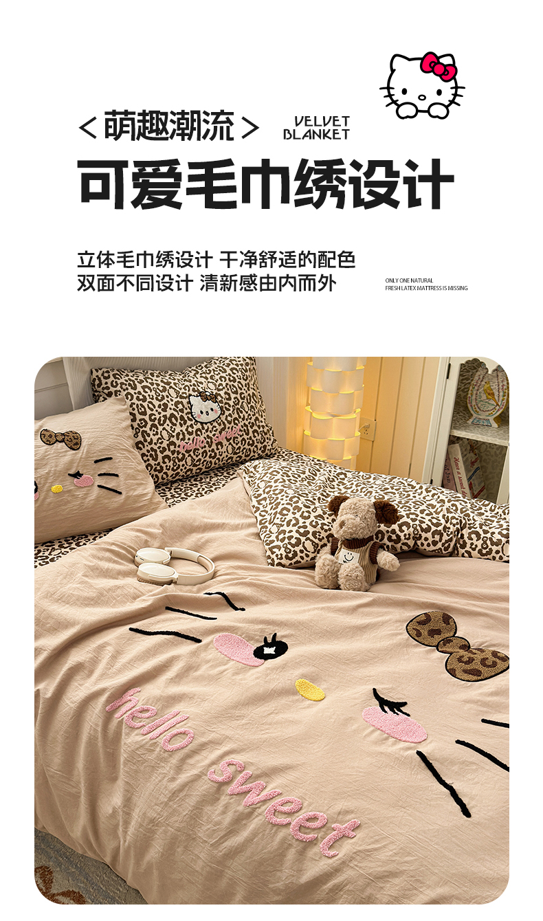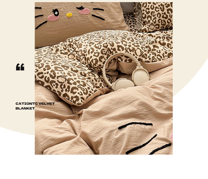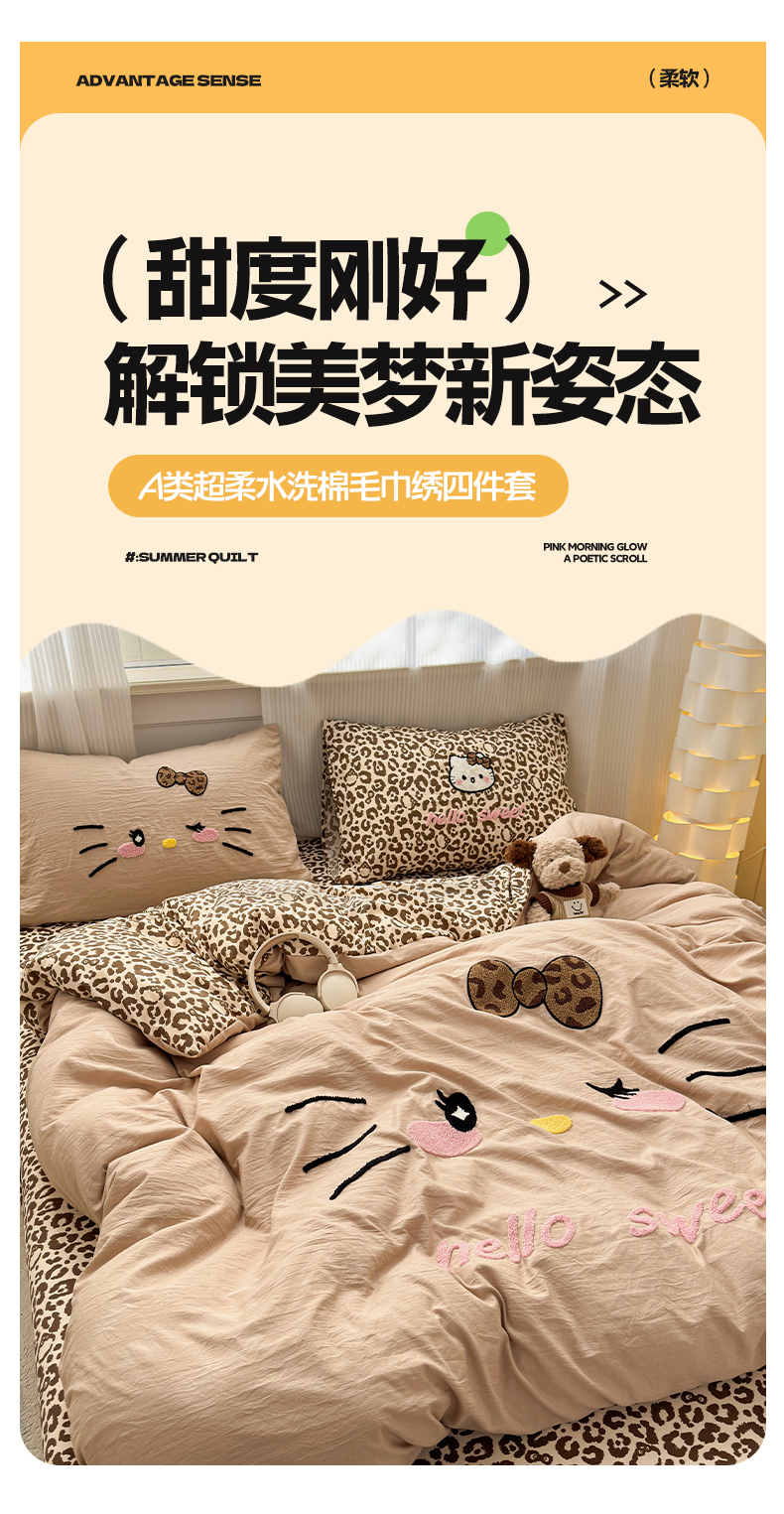 当前位置: 91家纺网 > 商品网购 > 床品套件 > 四件套 > 水洗棉四件套 > 奈颜 2026新款A类水洗棉大版毛巾绣豹纹小猫四件套--影棚图 豹纹小猫-浅咖