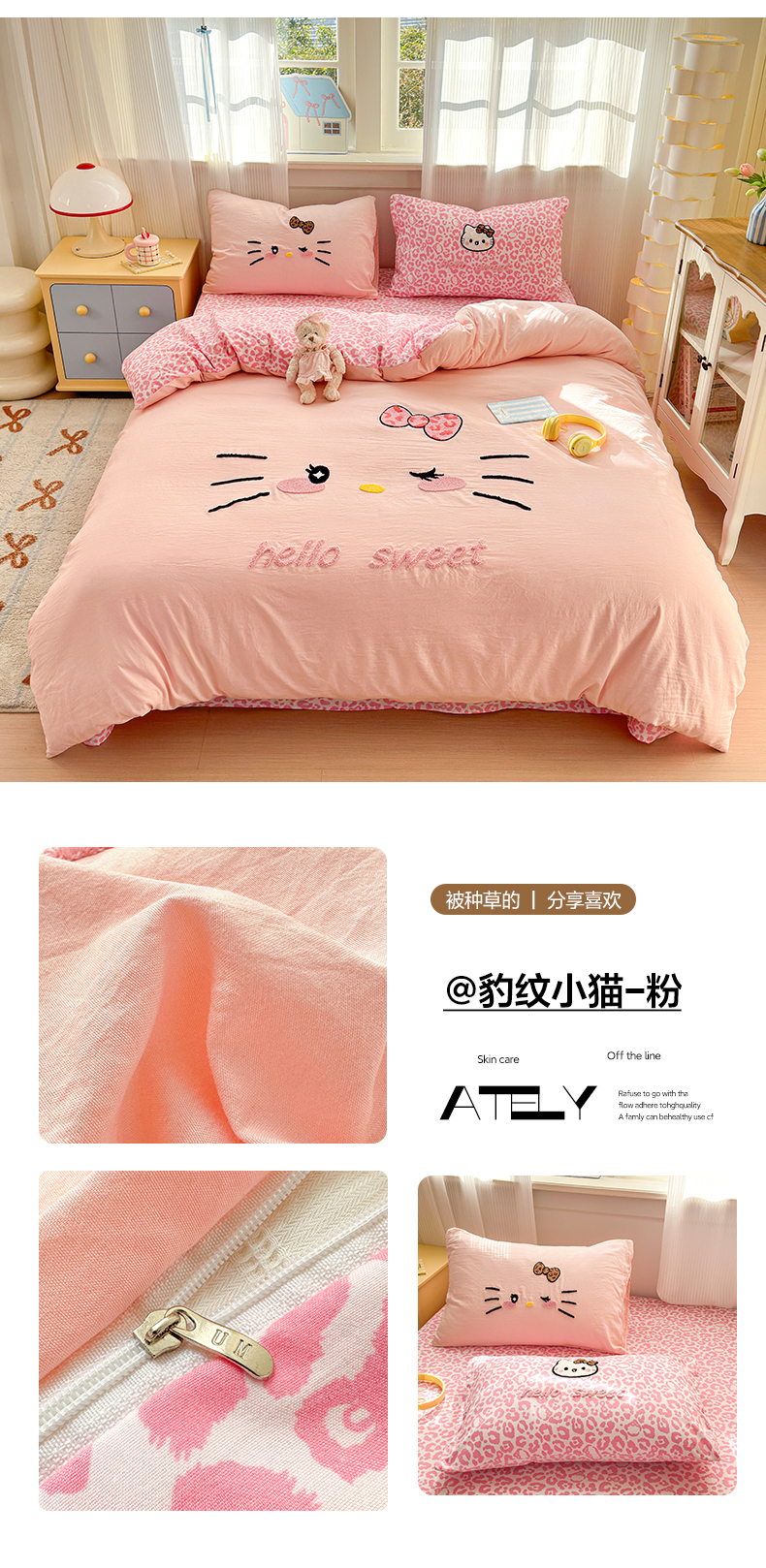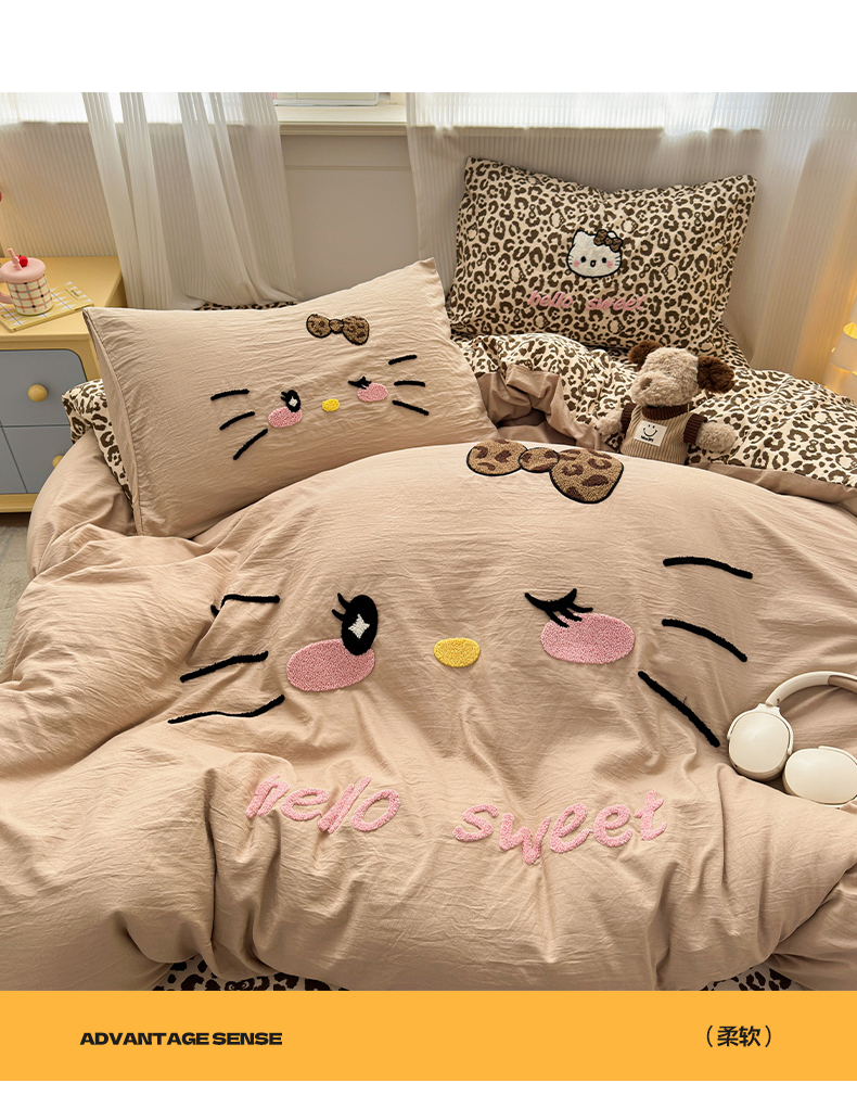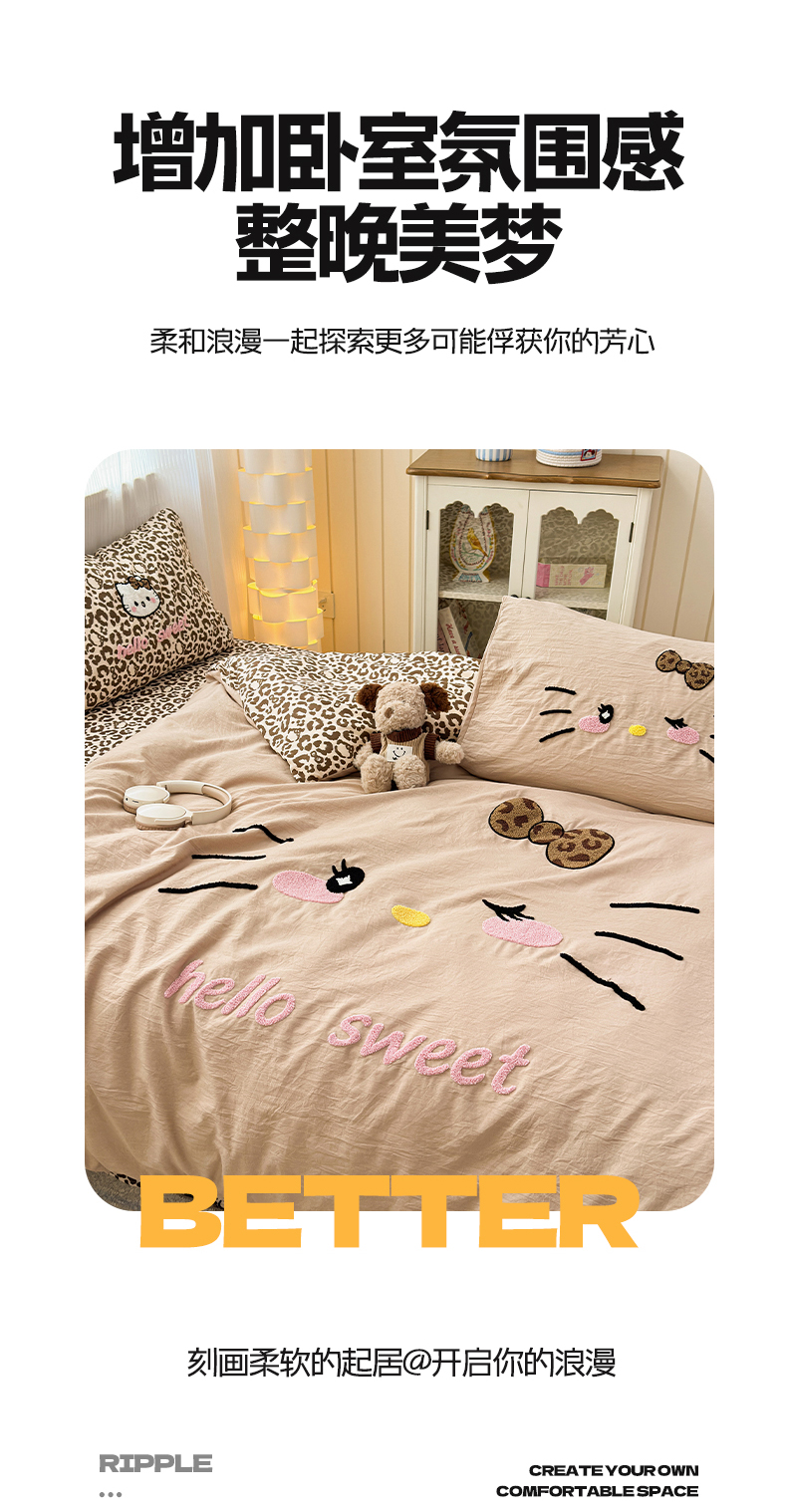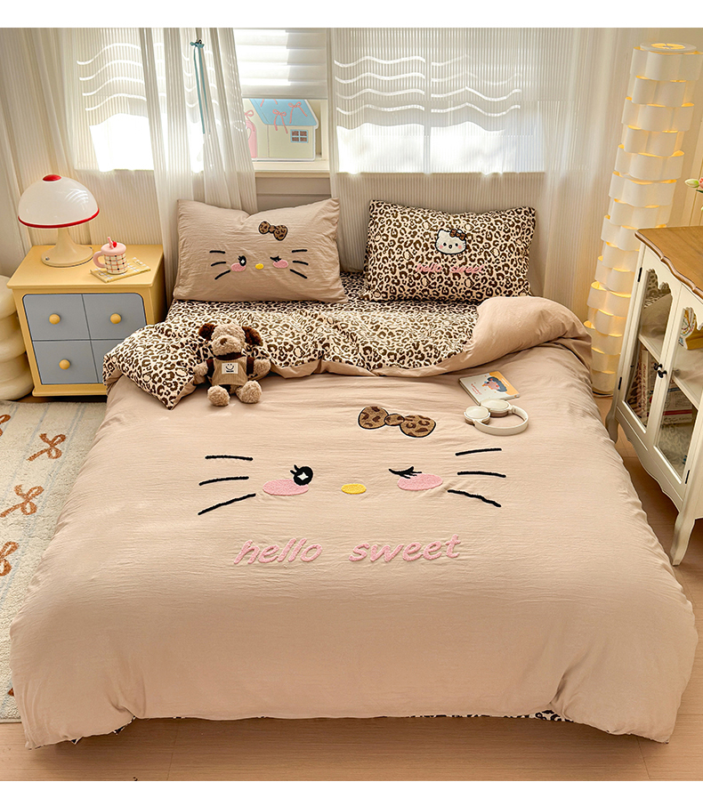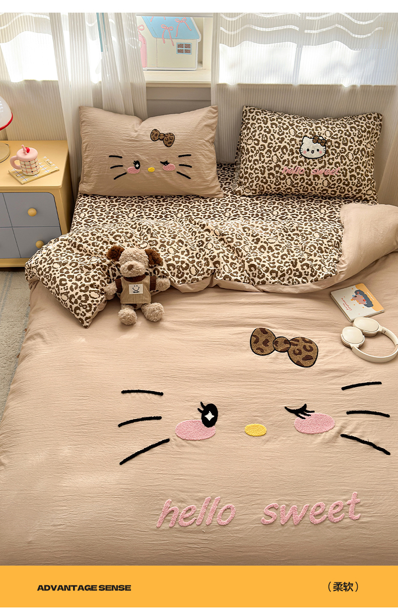 当前位置: 91家纺网 > 商品网购 > 床品套件 > 四件套 > 水洗棉四件套 > 奈颜 2026新款A类水洗棉大版毛巾绣豹纹小猫四件套--影棚图 豹纹小猫-浅咖