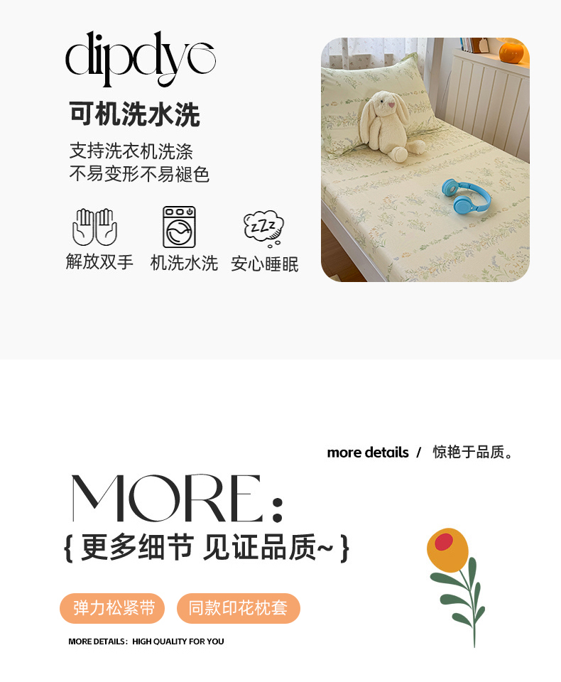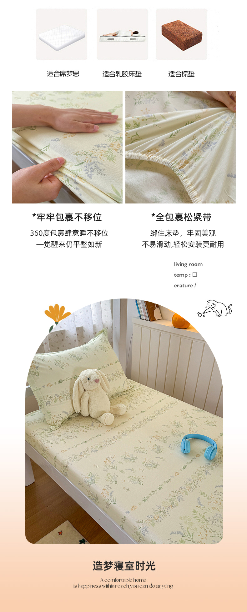 尚帛 2026新款全棉品质喷气印花爆款四件套 多规格套件 单品系列-学生款单床笠 丛草集