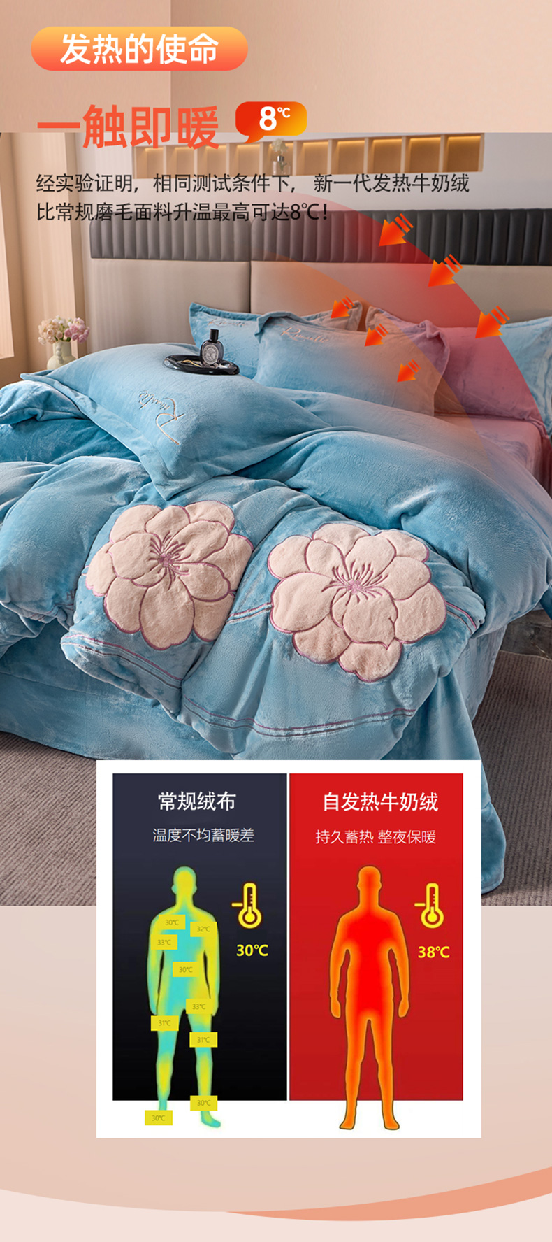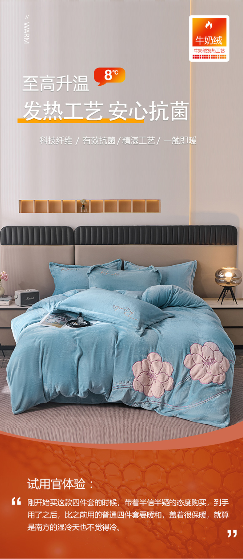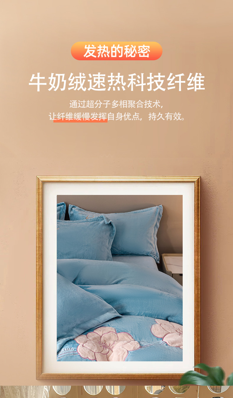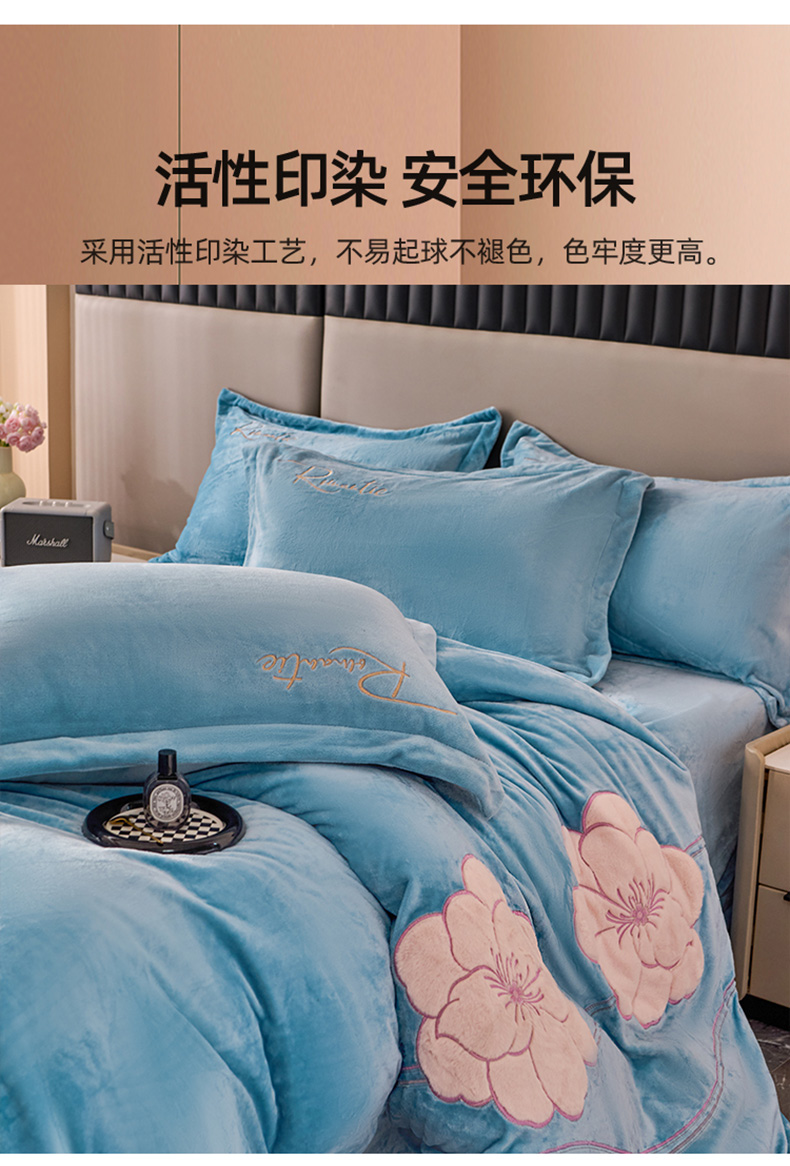 商品名称:卡诗兰 2026新款保暖牛奶绒四件套-花影 花影-玻璃蓝