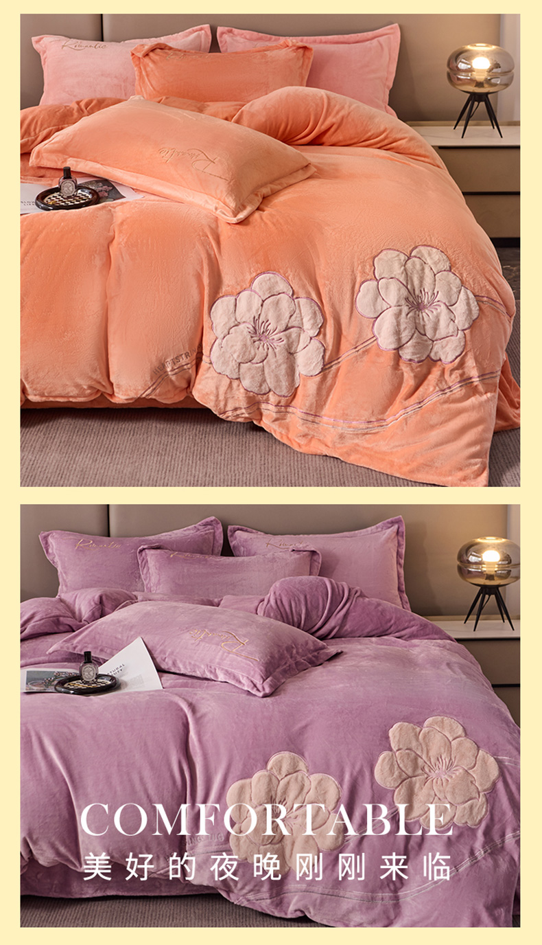 (总)卡诗兰 2026新款保暖牛奶绒四件套-花影,花影-玻璃蓝,花影-暖玉,花影-浅紫,花影-银灰,花影-玉粉