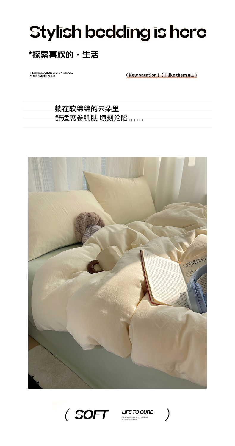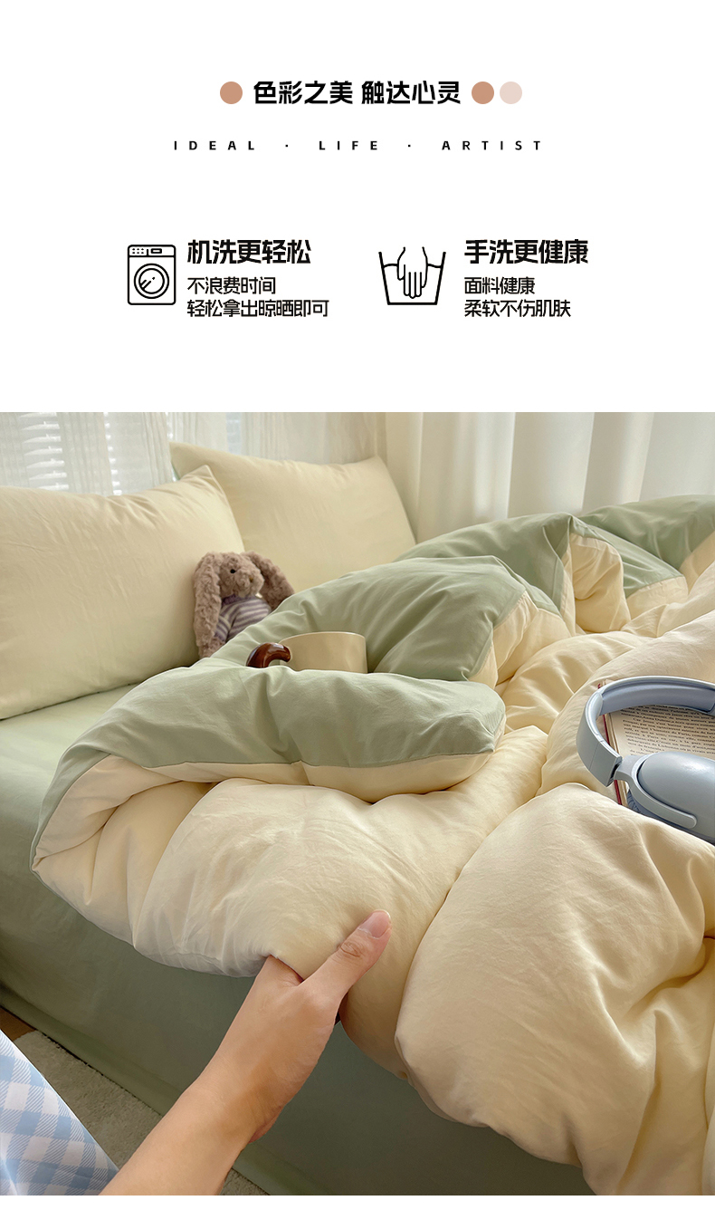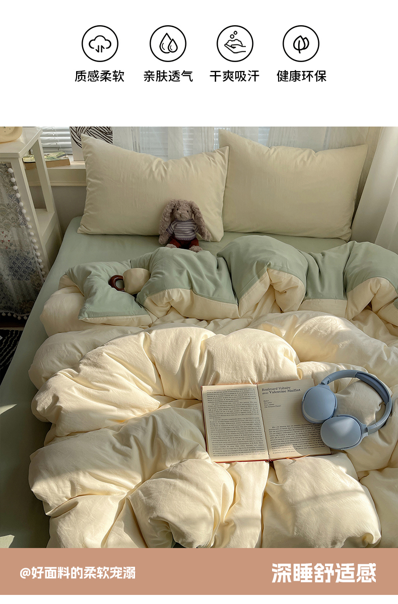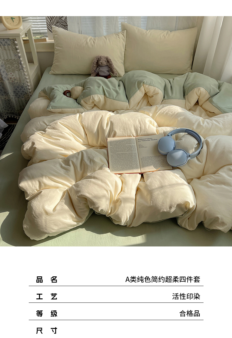 当前位置: 91家纺网 > 商品网购 > 床品套件 > 四件套 > 水洗棉四件套 > 沐芷 2026 纯色水洗棉A类四件套105g床上用品床单被套三件套---【提供买家秀】 米黄草绿
