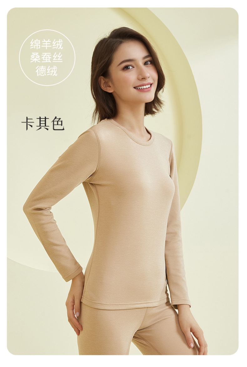 商品名称:良品汇馆 2026【加厚德绒女内衣】德绒保暖内衣良品圆领女士秋衣秋裤套装羊毛蚕丝加厚新款 德绒女-卡其
