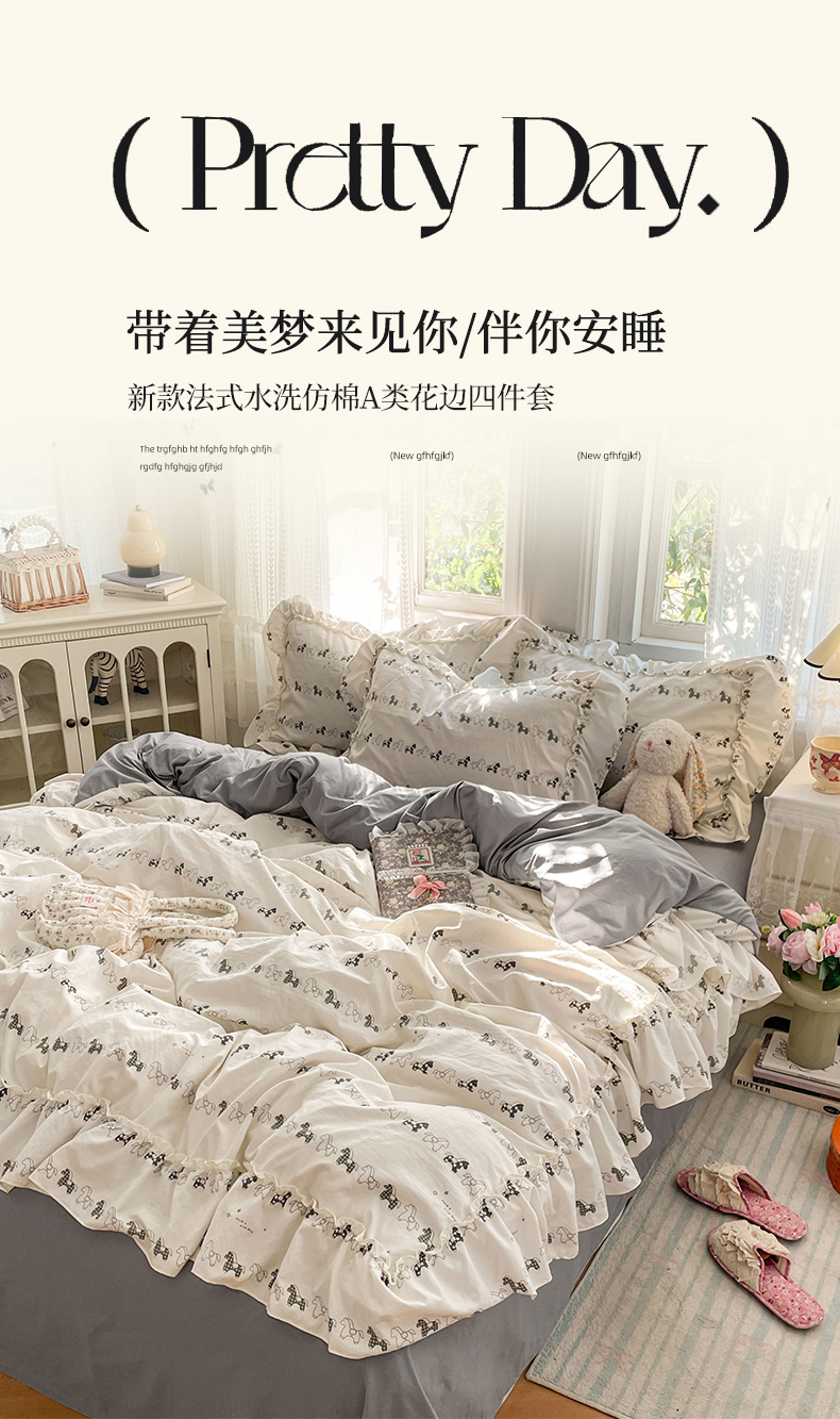 当前位置: 91家纺网 > 商品网购 > 床品套件 > 四件套 > 其它四件套 > 优尚佳生活馆 2026新款A类仿棉水洗法式工艺花边四件套 金马转运