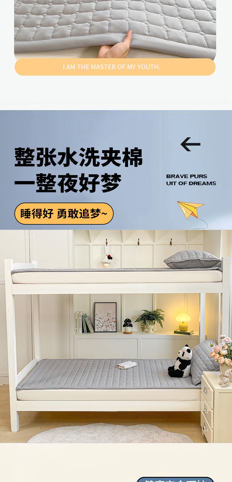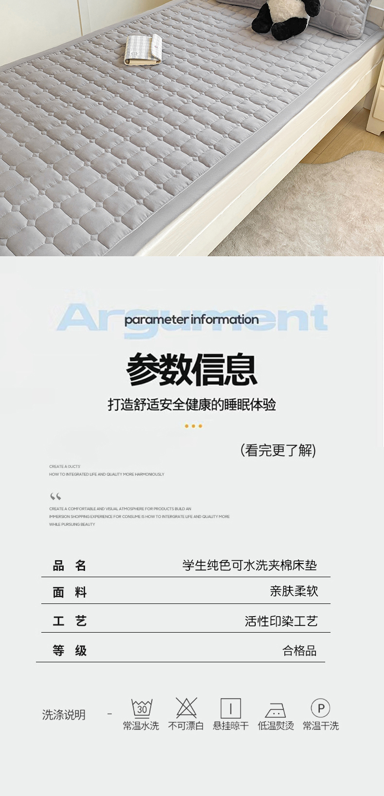 当前位置: 91家纺网 > 商品网购 > 床垫/床褥 > 普通床垫 > 麒东家纺 2026新款学生纯色水洗棉夹棉床垫系列 灰色