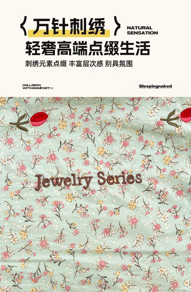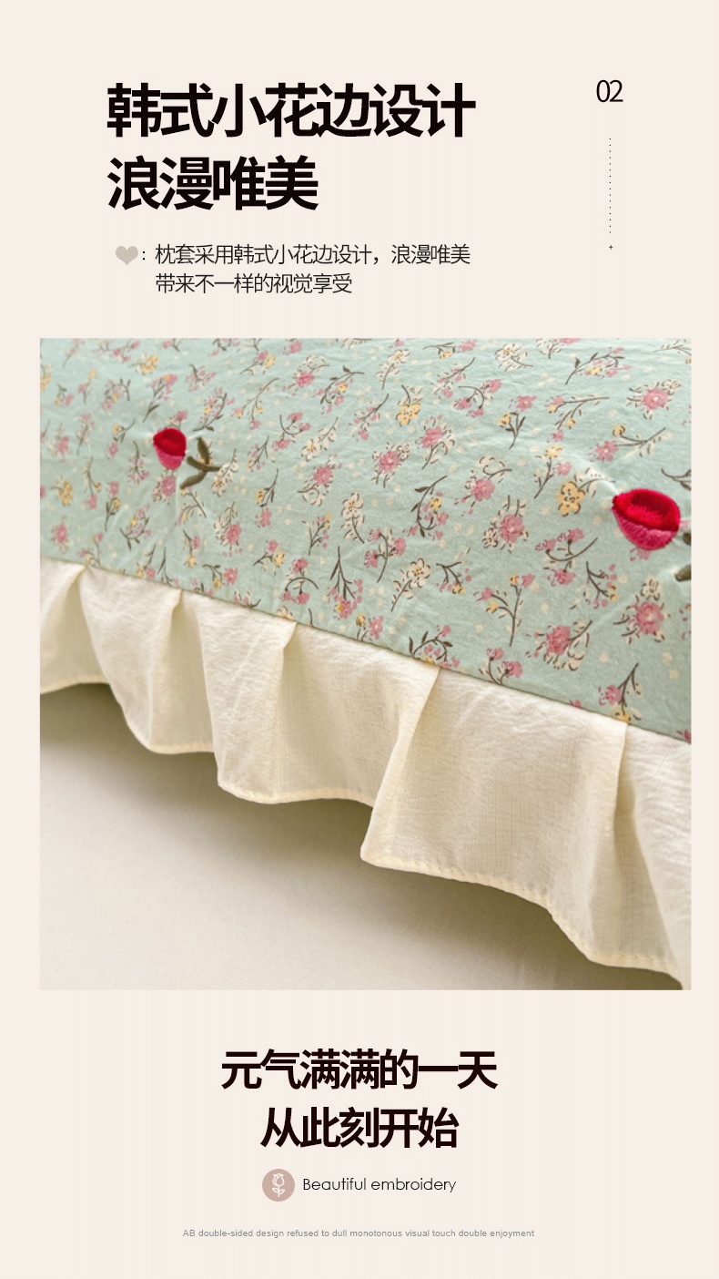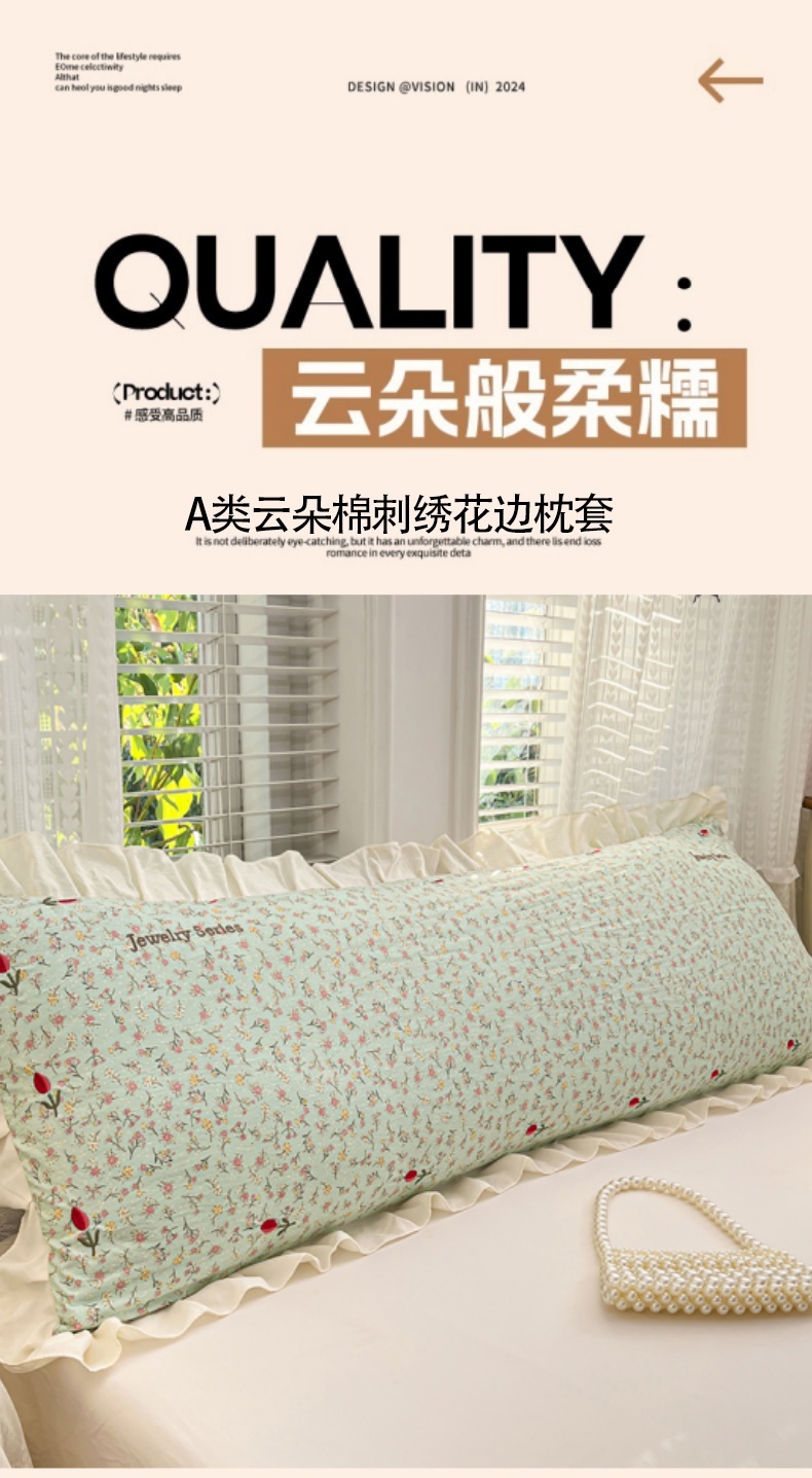 商品名称:圣比熊 2026新款A类云朵棉刺绣花边枕套宿舍情侣绣花双人加长枕芯内胆套 薄荷之夏(刺绣款)