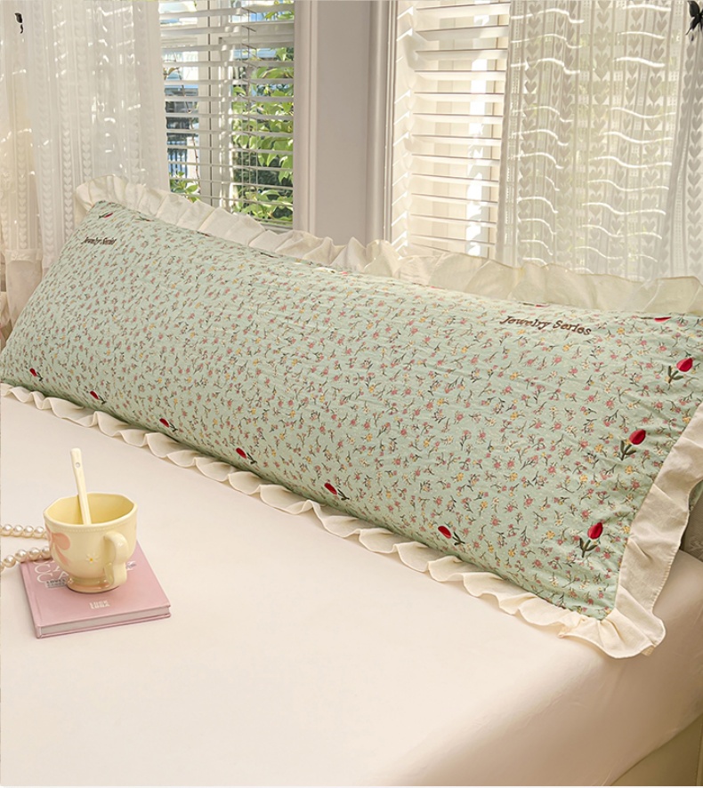 圣比熊 2026新款A类云朵棉刺绣花边枕套宿舍情侣绣花双人加长枕芯内胆套 薄荷之夏(刺绣款)
