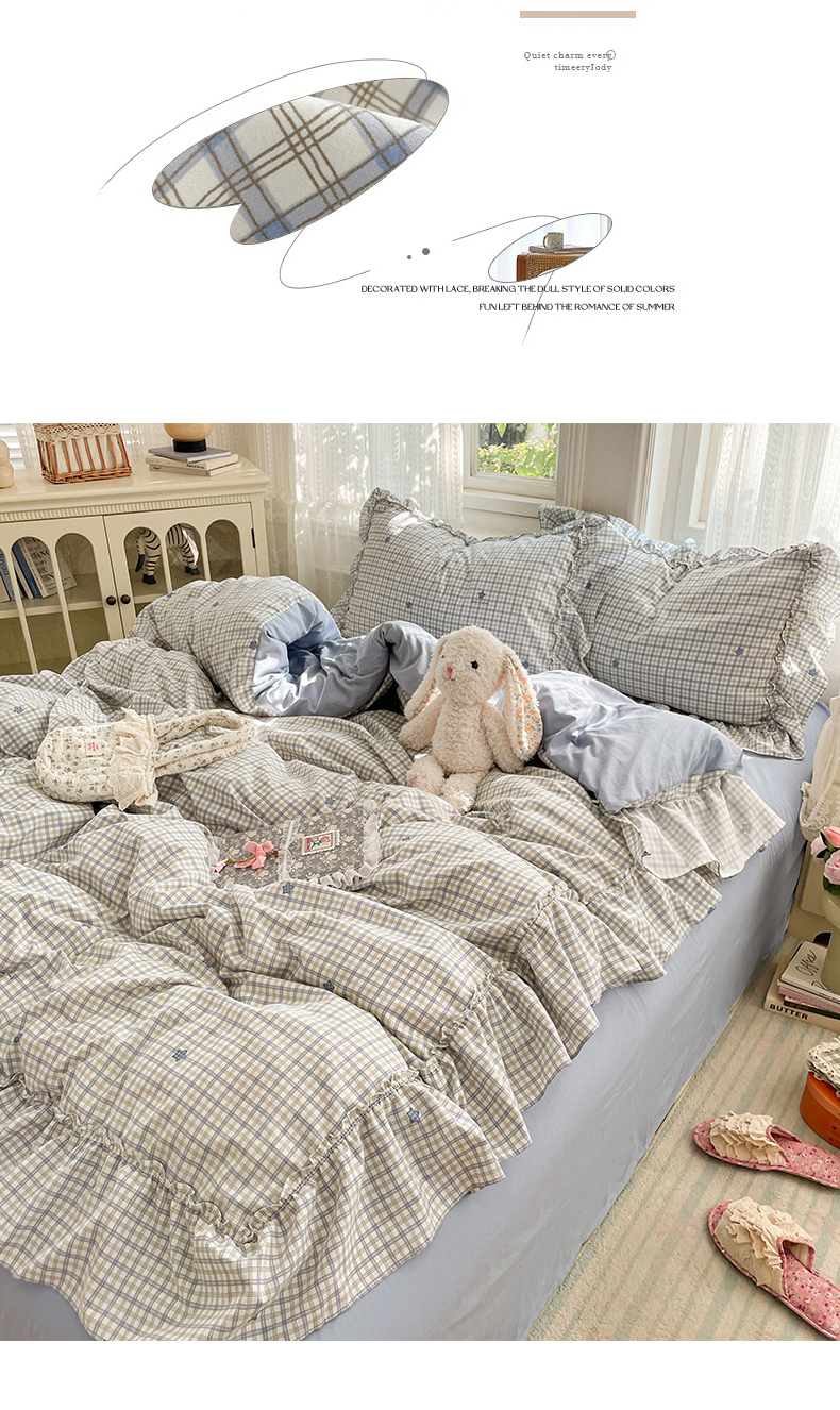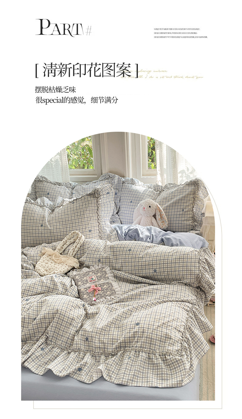 当前位置: 91家纺网 > 商品网购 > 床品套件 > 四件套 > 其它四件套 > 优佳优品 2026新款A类仿棉水洗法式工艺花边四件套 格纹河畔