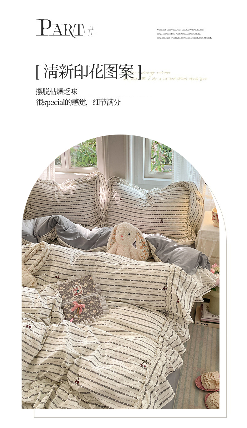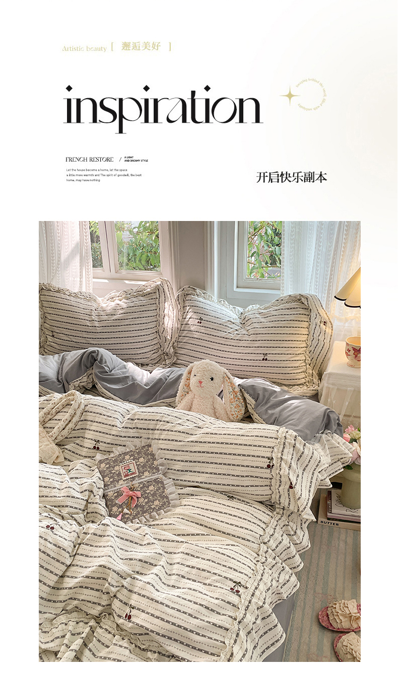 当前位置: 91家纺网 > 商品网购 > 床品套件 > 四件套 > 其它四件套 > 优佳优品 2026新款A类仿棉水洗法式工艺花边四件套 条纹织梦