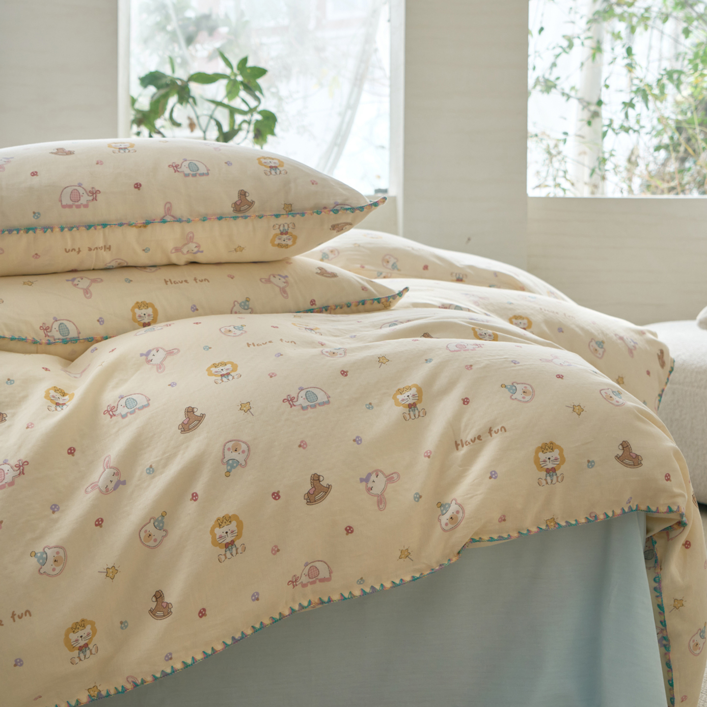 洋铭区(原狠狠爱) 2026新款春季全棉彩边双层纱四件套 奶糕熊熊