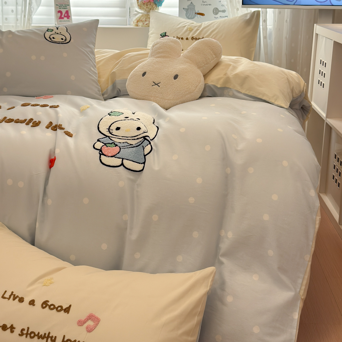 当前位置: 91家纺网 > 商品网购 > 床品套件 > 四件套 > 全棉普通四件套 > 懒猫家纺 2026新款A类高精密40支13374全棉纯棉喷气印花贴布绣四件套 【带礼盒】 海盐芝士