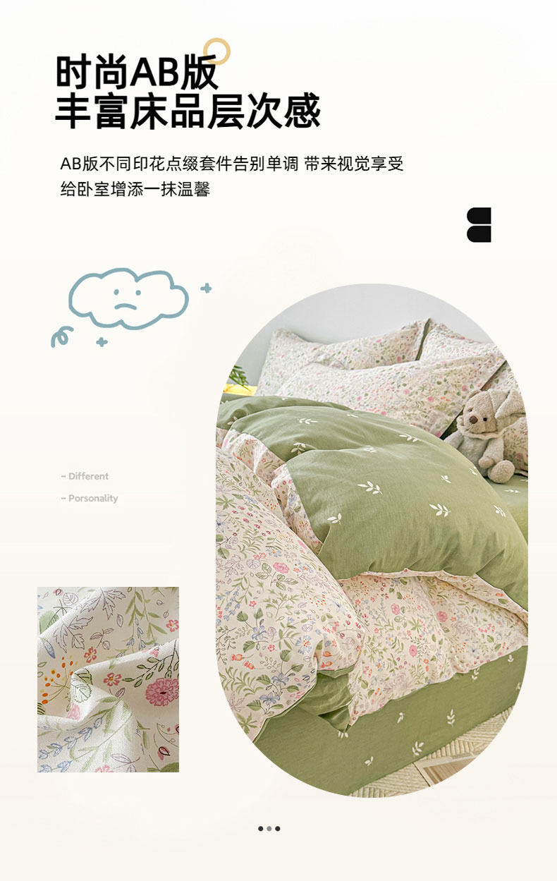 (总)红淳家纺 2026新款全棉A类双层纱四件套,清桃,花漾,洛神玫瑰,秘境花园-粉,秘境花园-绿,枝蔓-蓝,紫纱-米