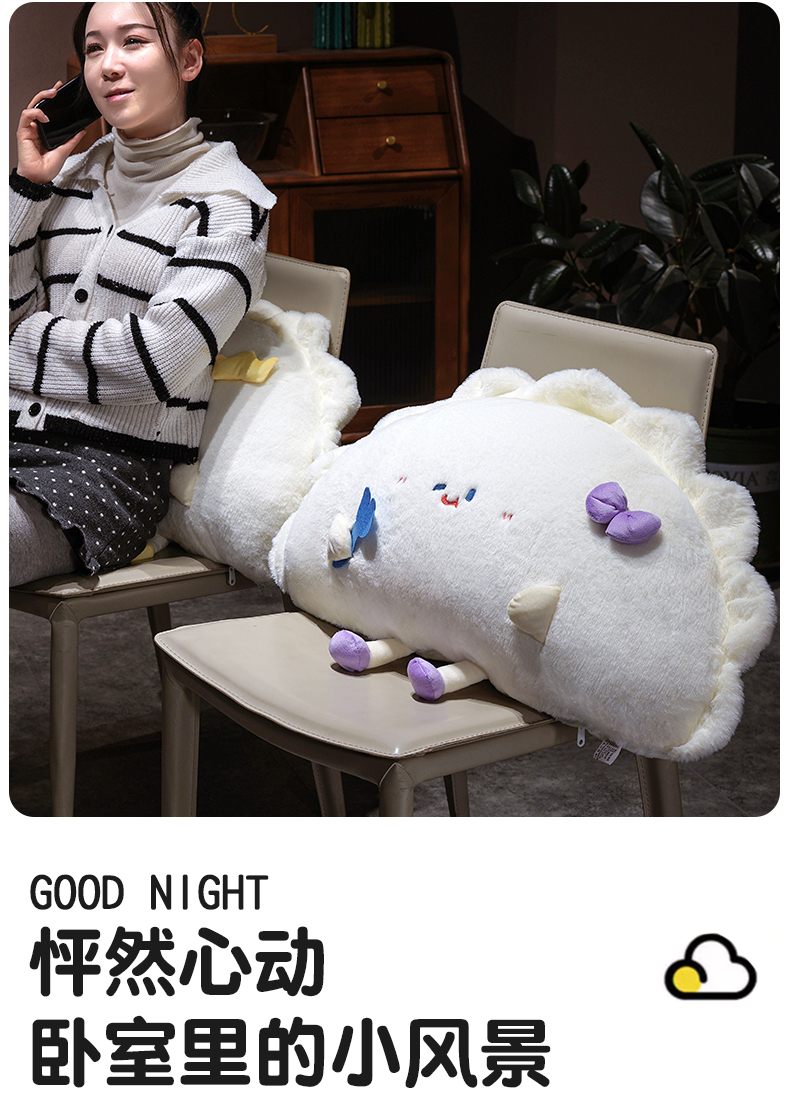 (总)仟亿莱 2026新款兔毛饺子“饺”好运床头靠枕,红色爱心饺子,黄色皇冠饺子,紫色蝴蝶结饺子,组合图(仅供展示不可下单)