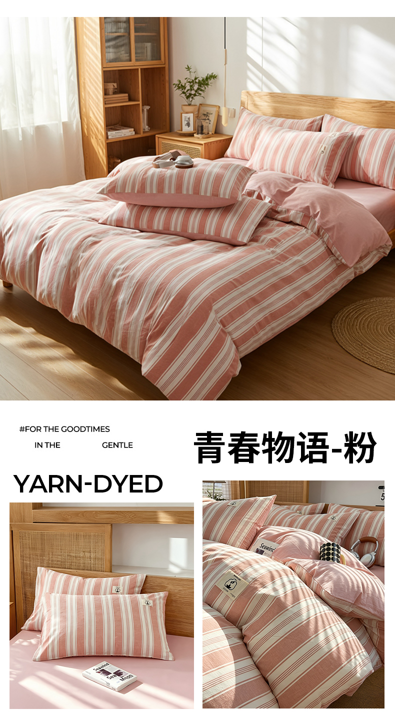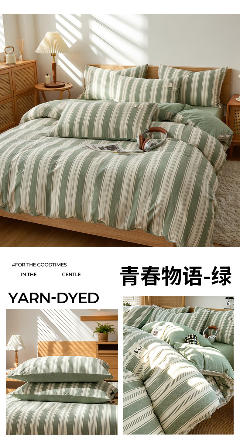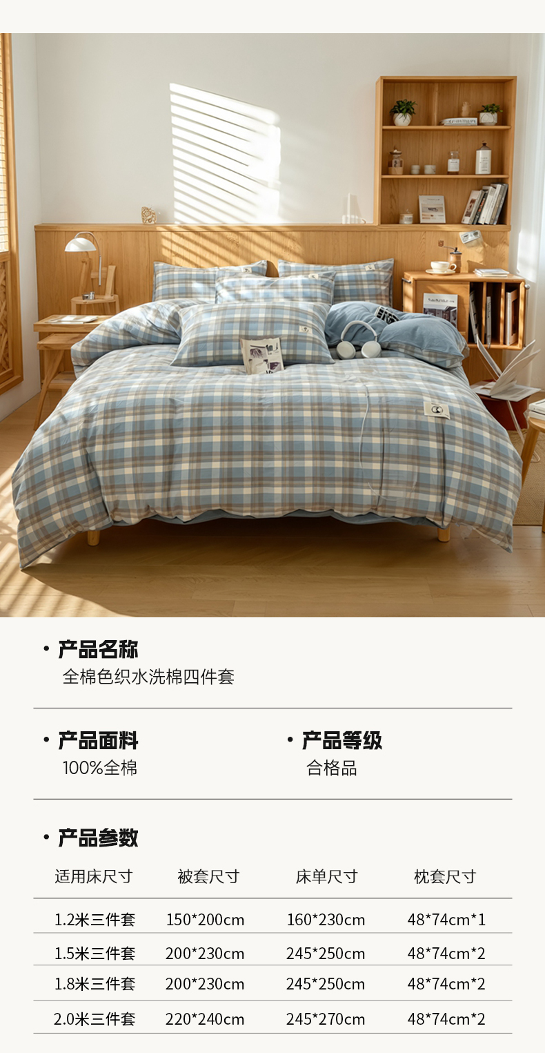 商品名称:2026年新款色织全棉纯棉四件套条纹格子复古风床单床笠款套件四季通用(有质检报告)
