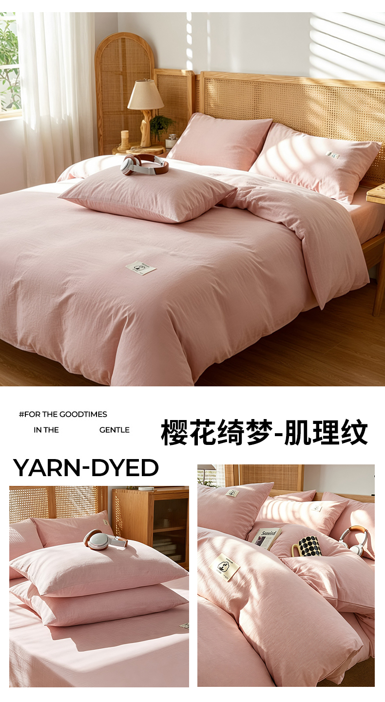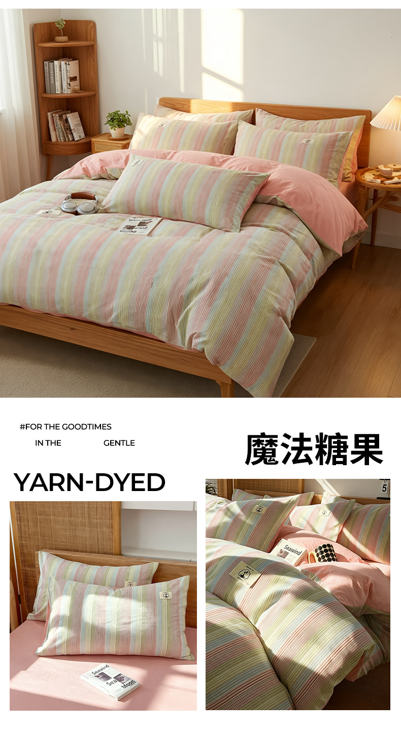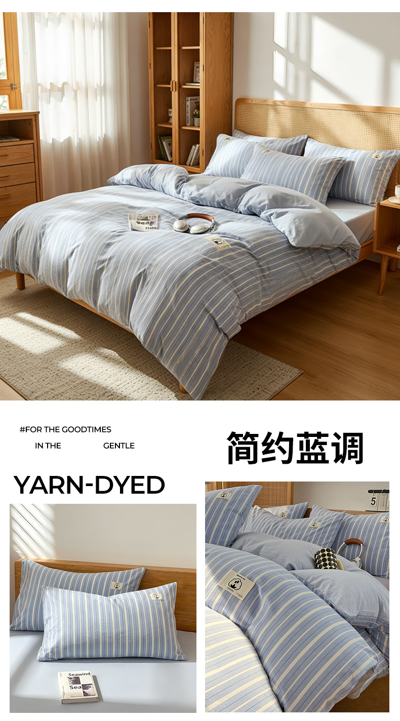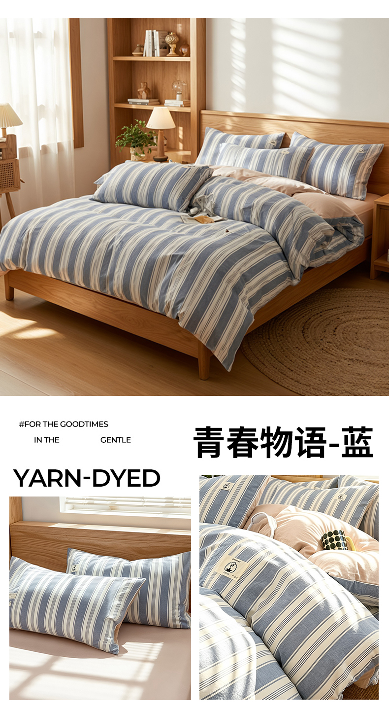 商品名称:2026年新款色织全棉纯棉四件套条纹格子复古风床单床笠款套件四季通用(有质检报告)
