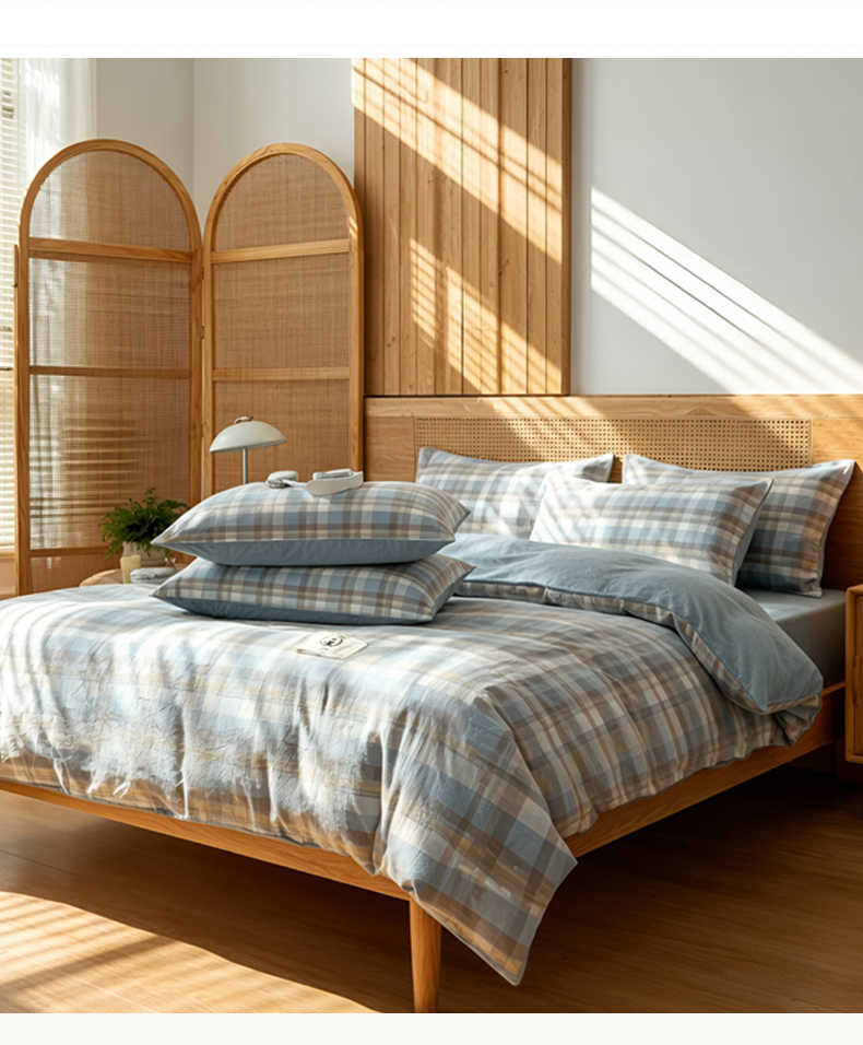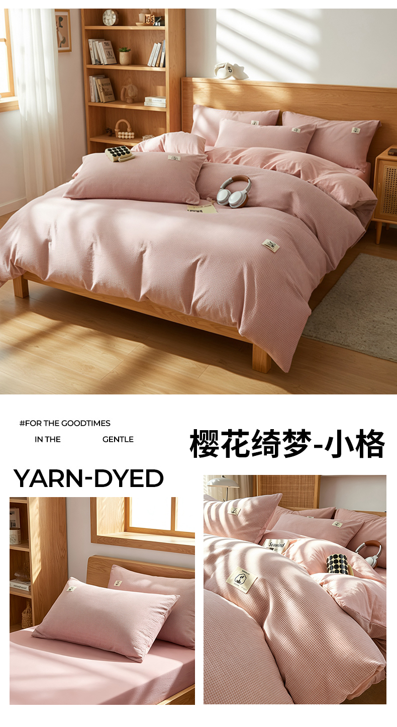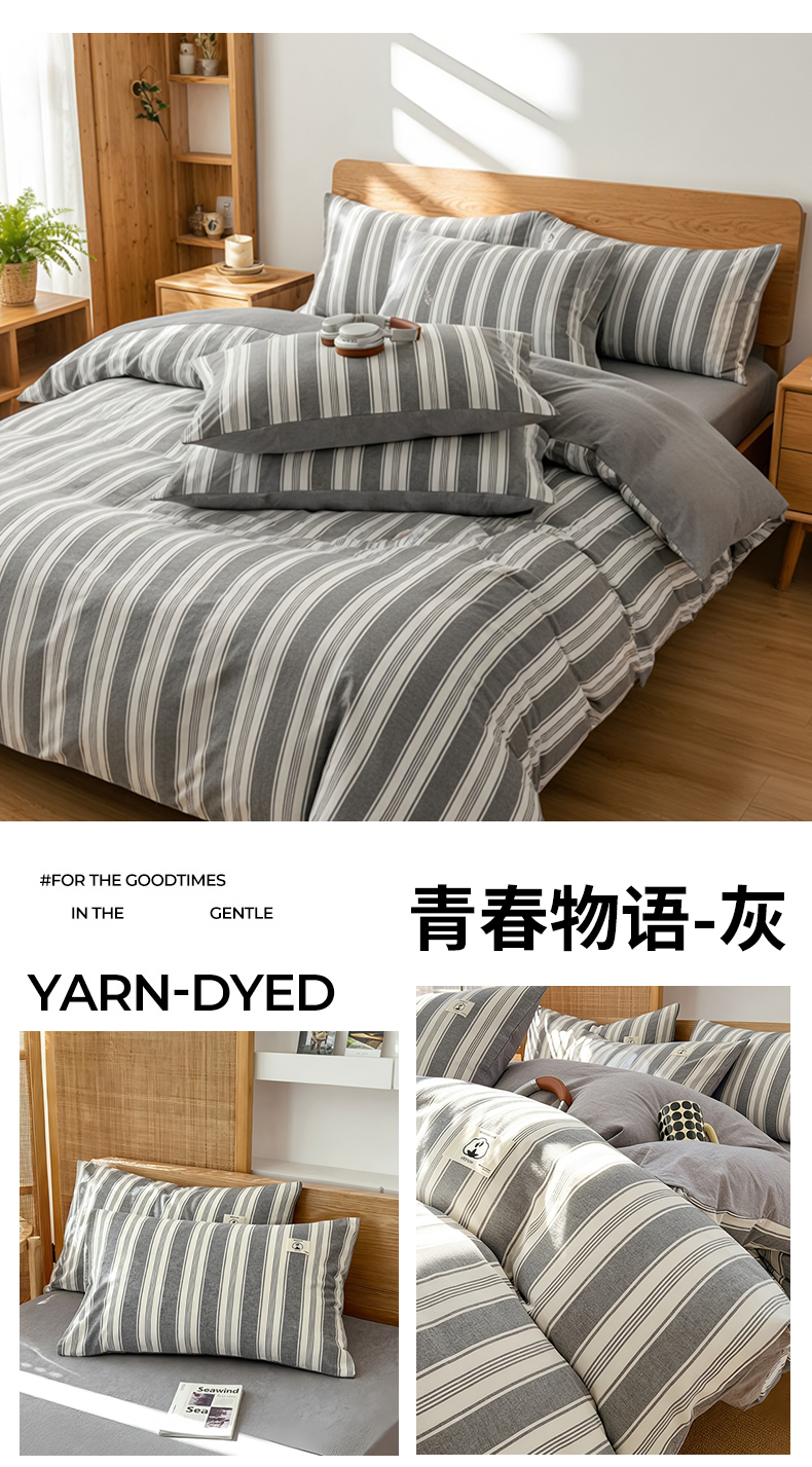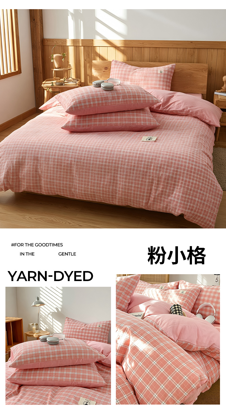 2026年新款色织全棉纯棉四件套条纹格子复古风床单床笠款套件四季通用(有质检报告)