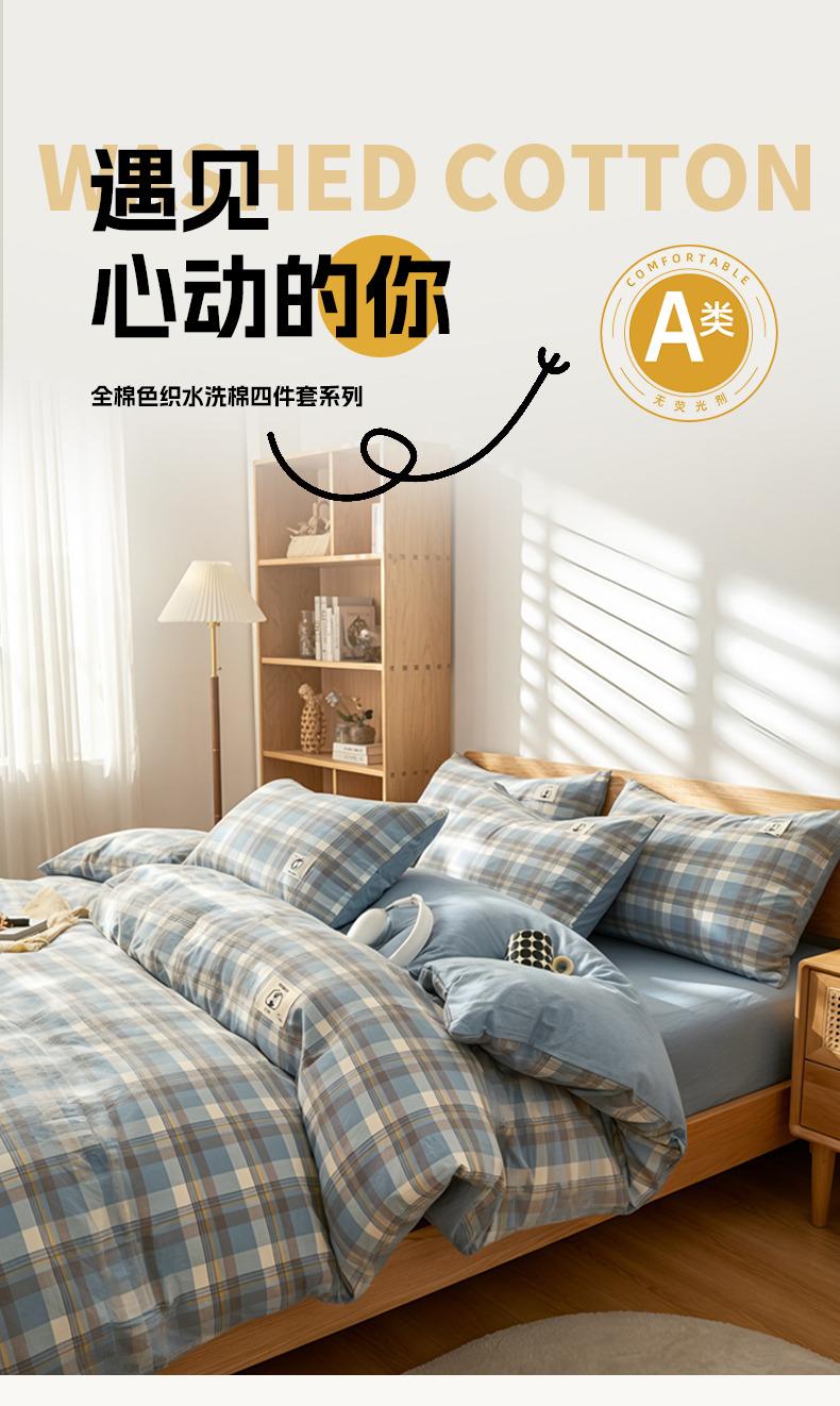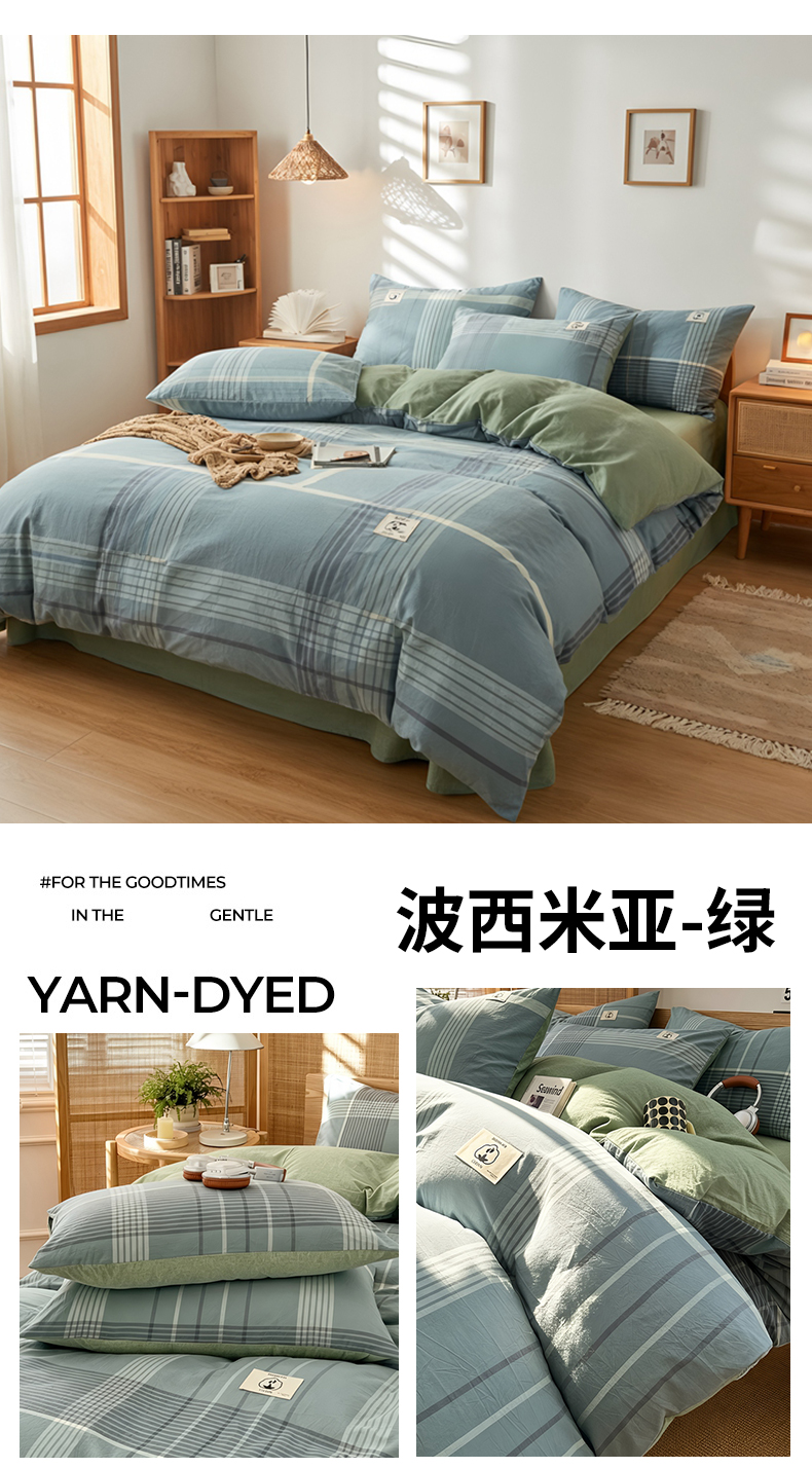 (总)2024新款色织全棉水洗棉四件套,巴莉灰橘,黄小格,维多利亚紫,素色风尚-绿,素色风尚-蓝,素色风尚-灰,暖芙湖蓝,罗拉寻梦,米娅蓝灰,黑中格,粉小格,波西米亚-绿