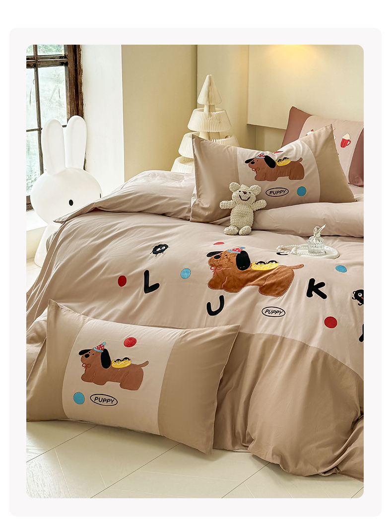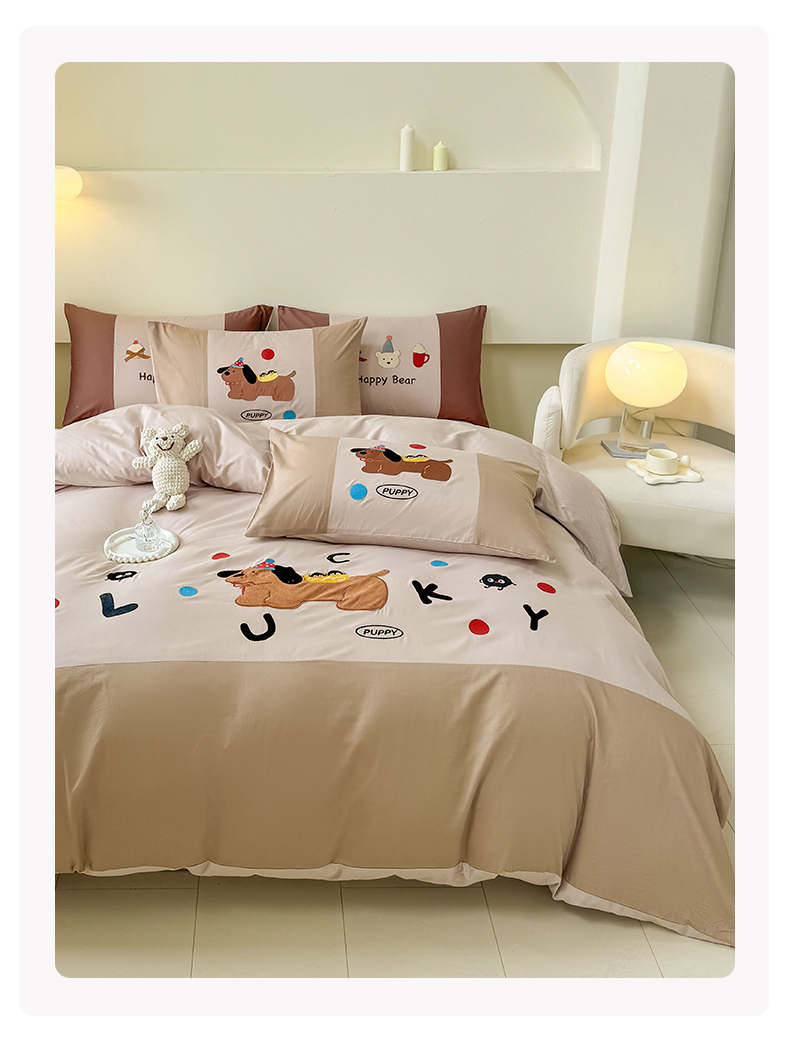 波比可可 2026新款全棉纯棉可爱刺绣四件套 PUPPY狗