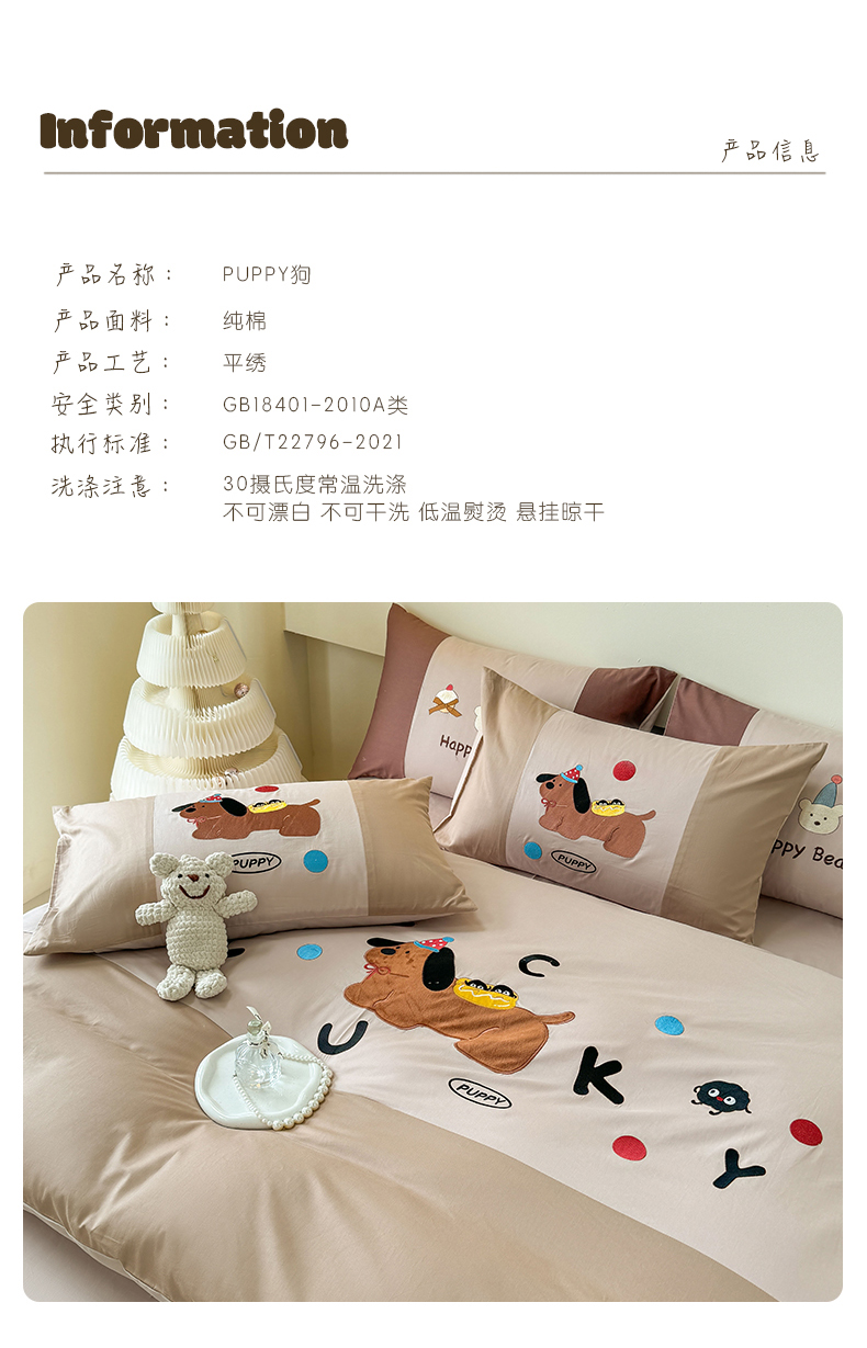 商品名称:波比可可 2026新款全棉纯棉可爱刺绣四件套 PUPPY狗