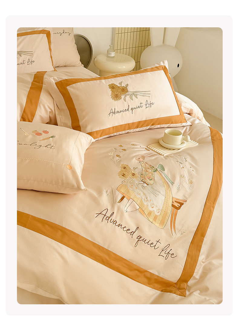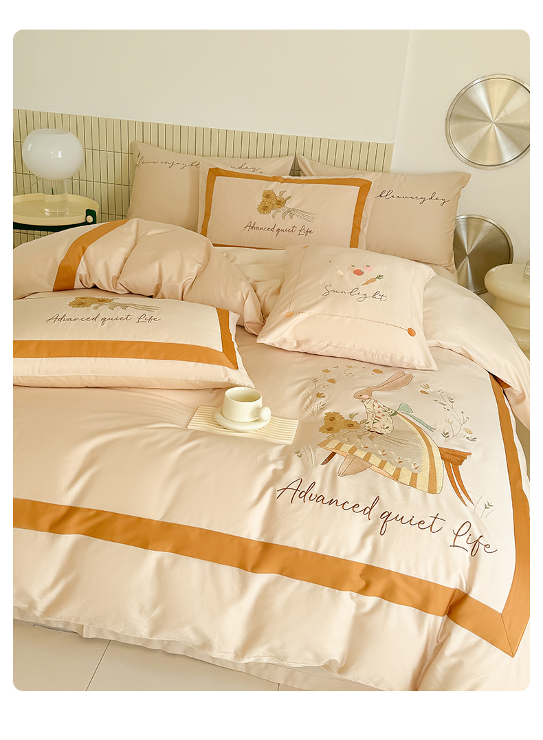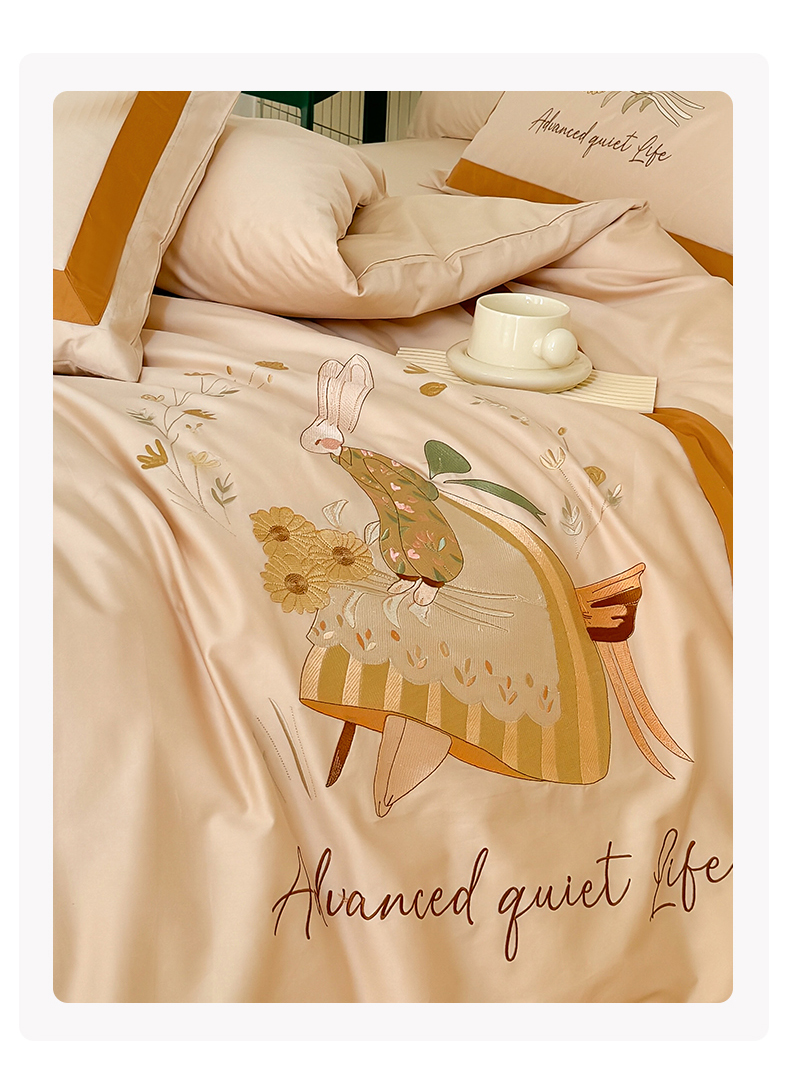 波比可可 2026新款50s长绒棉纯棉全棉居家轻奢刺绣四件套 兔子