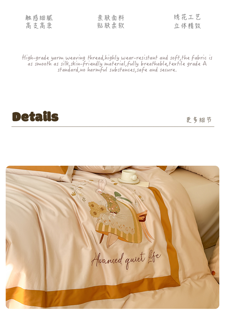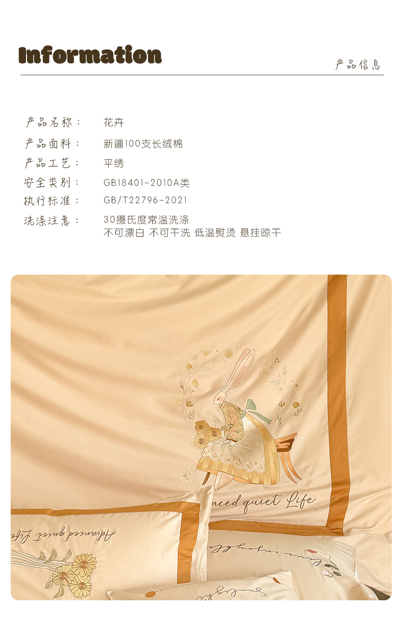 商品名称:波比可可 2026新款50s长绒棉纯棉全棉居家轻奢刺绣四件套 兔子