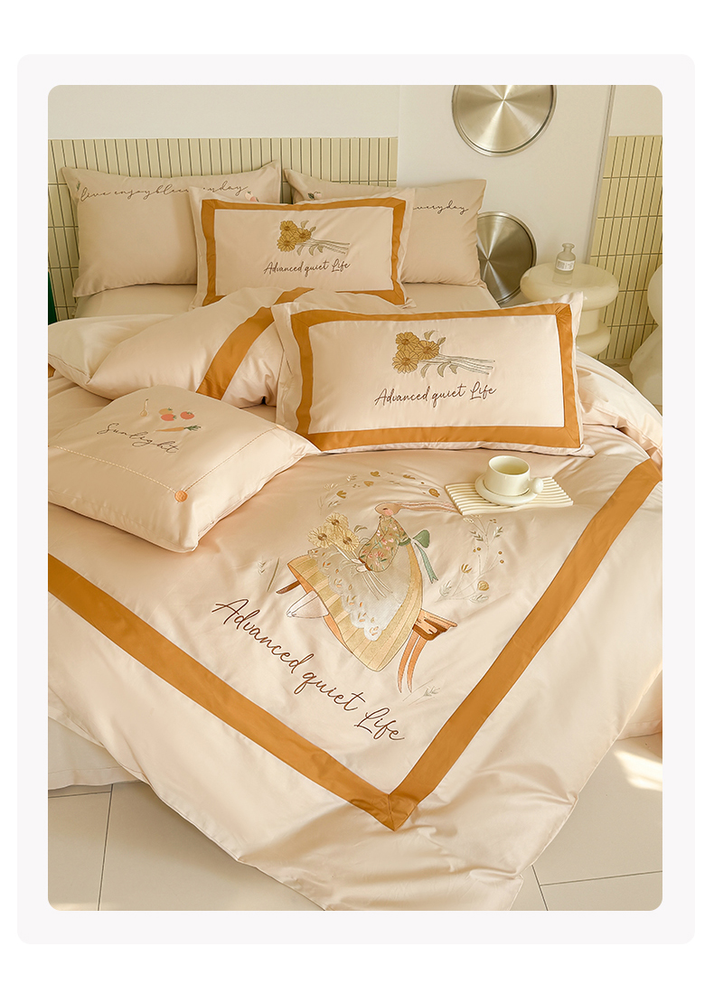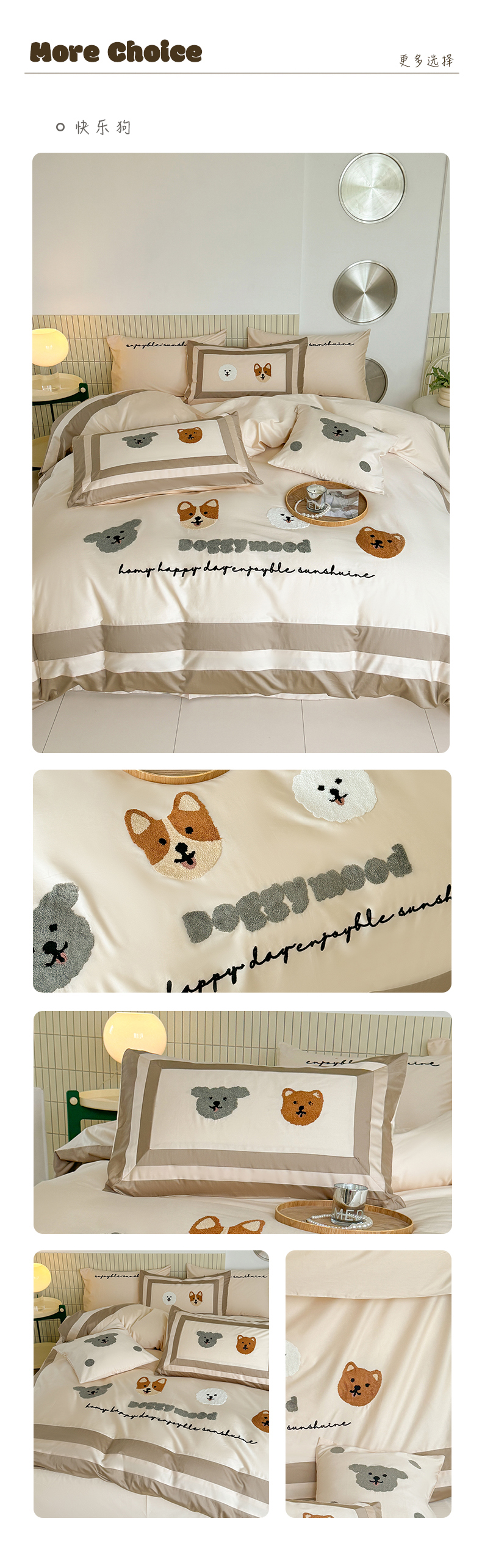(总)波比可可 2026新款50s长绒棉纯棉全棉居家轻奢刺绣四件套,小比熊,花卉,咖啡猫,快乐狗,快乐喵,礼物,兔子