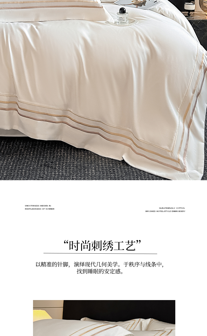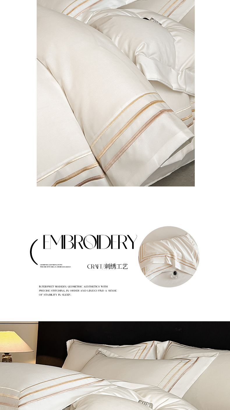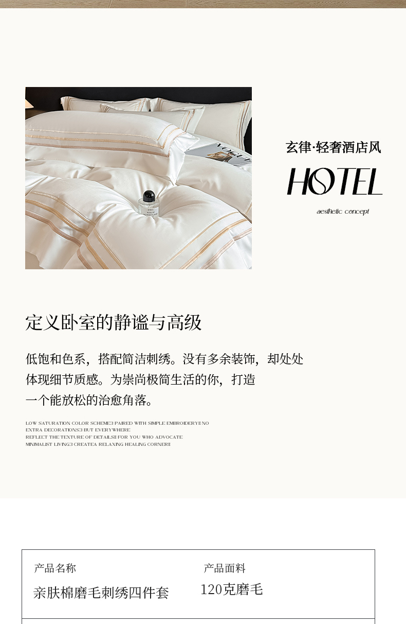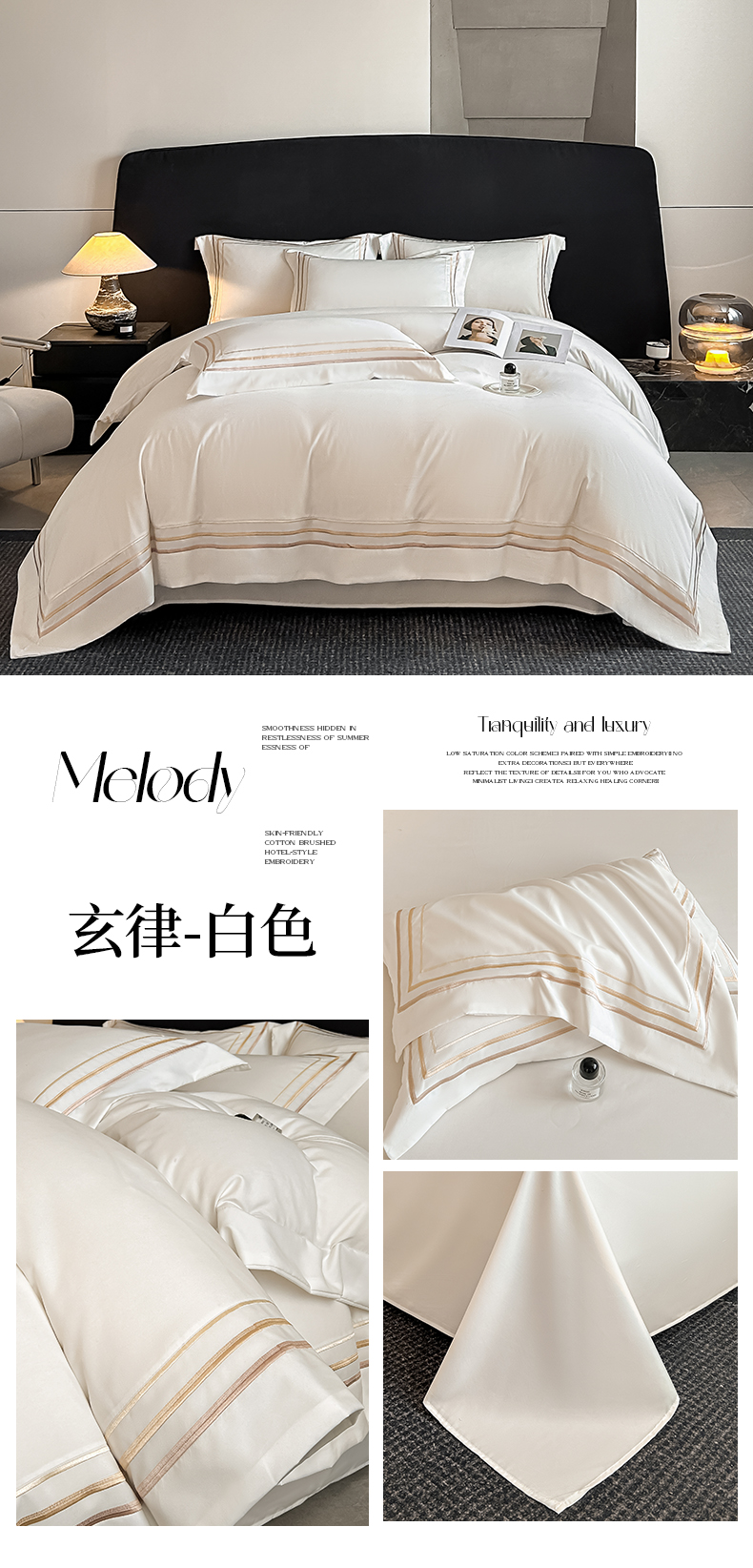 苏源家居 2026新款酒店风磨毛大拼角绣花轻奢四件套-玄律 玄律-白色