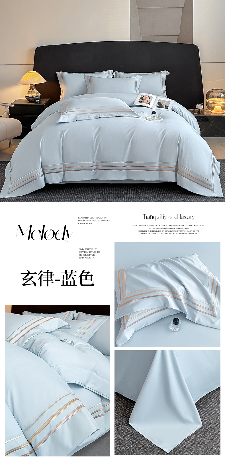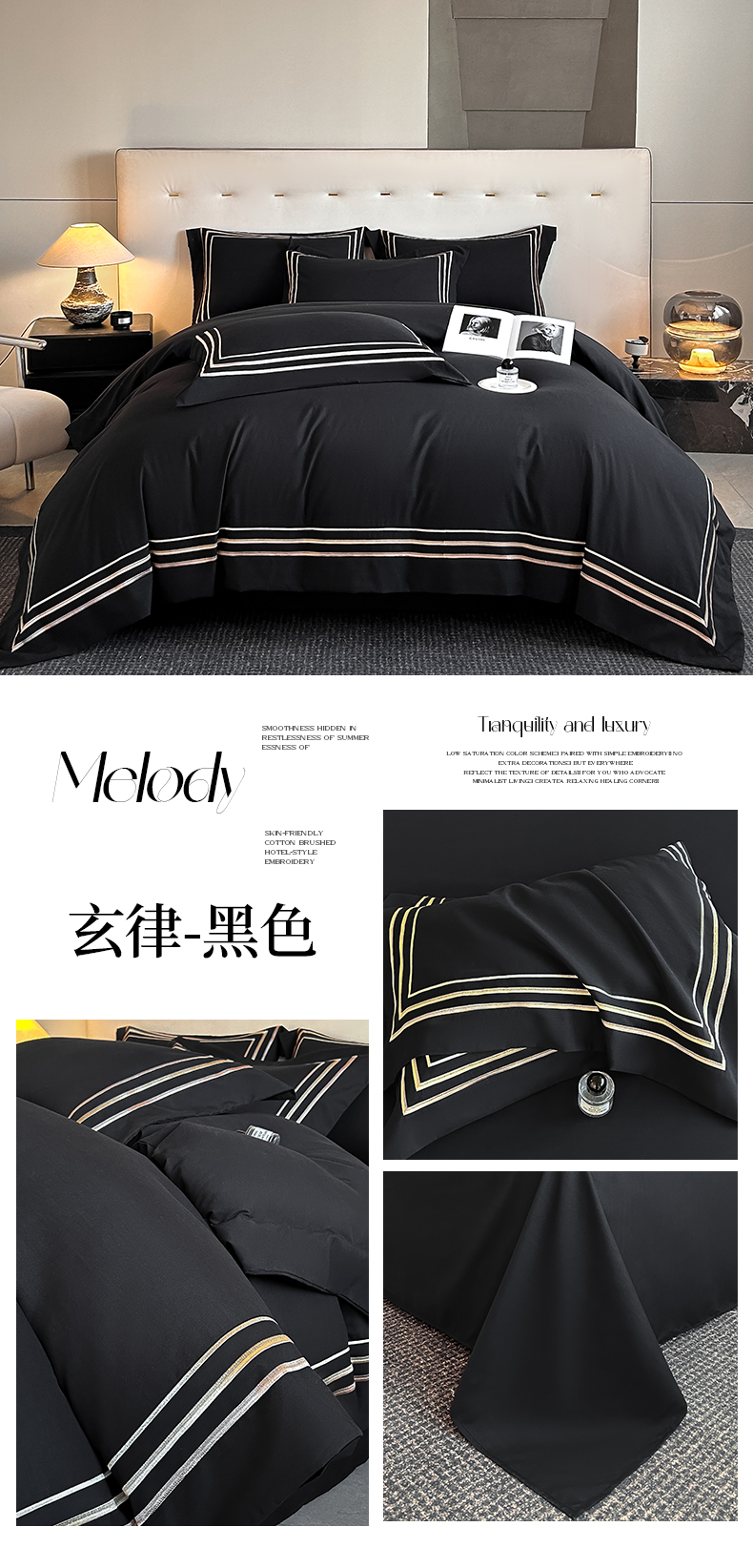 (总)苏源家居 2026新款酒店风磨毛大拼角绣花轻奢四件套-玄律,玄律-白色,玄律-黑色,玄律-灰色,玄律-蓝色