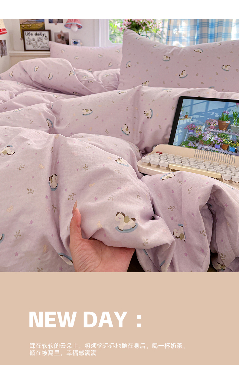 当前位置: 91家纺网 > 商品网购 > 床品套件 > 四件套 > 全棉普通四件套 > 焱博家纺 2026新款A类全棉双层纱系列四件套 宝妮乐园