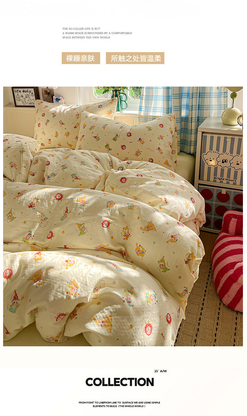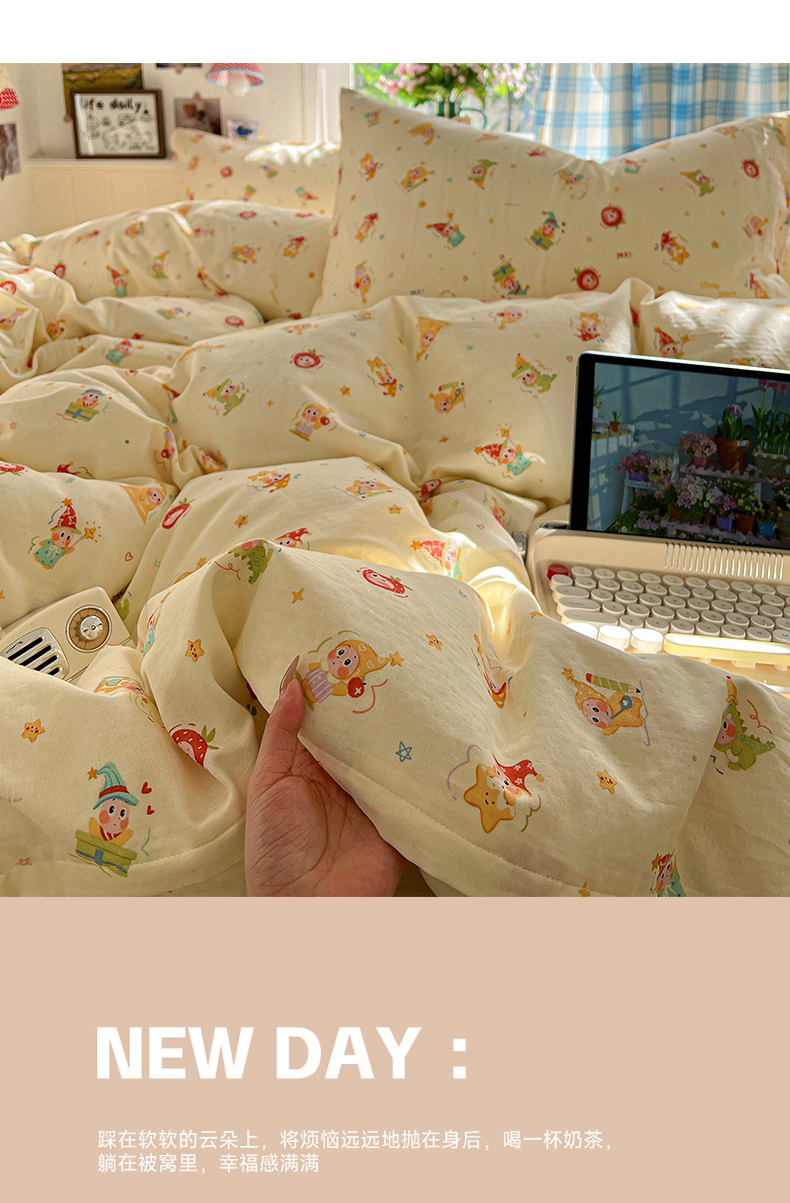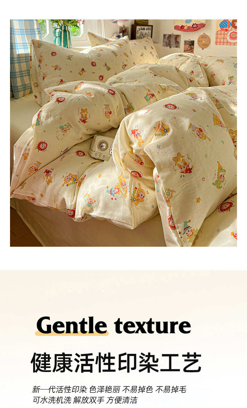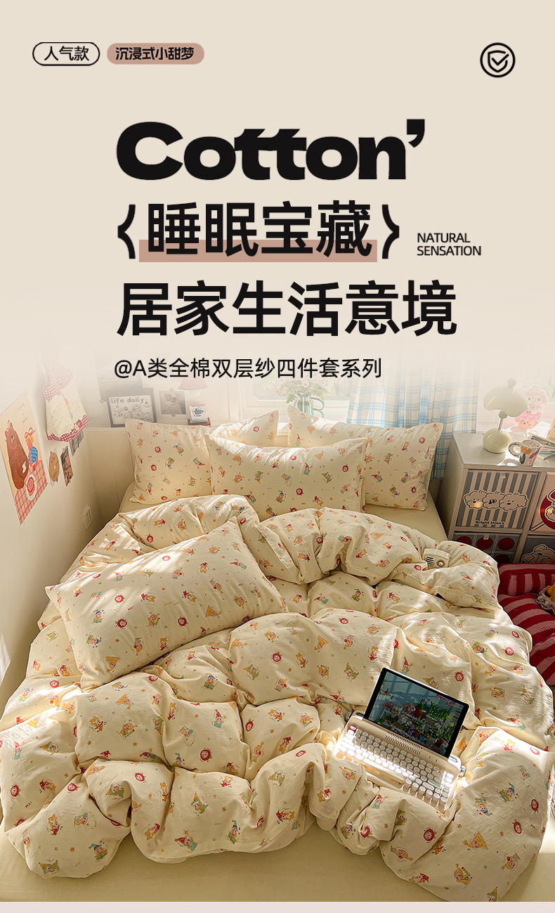 当前位置: 91家纺网 > 商品网购 > 床品套件 > 四件套 > 全棉普通四件套 > 焱博家纺 2026新款A类全棉双层纱系列四件套 星仔软糖