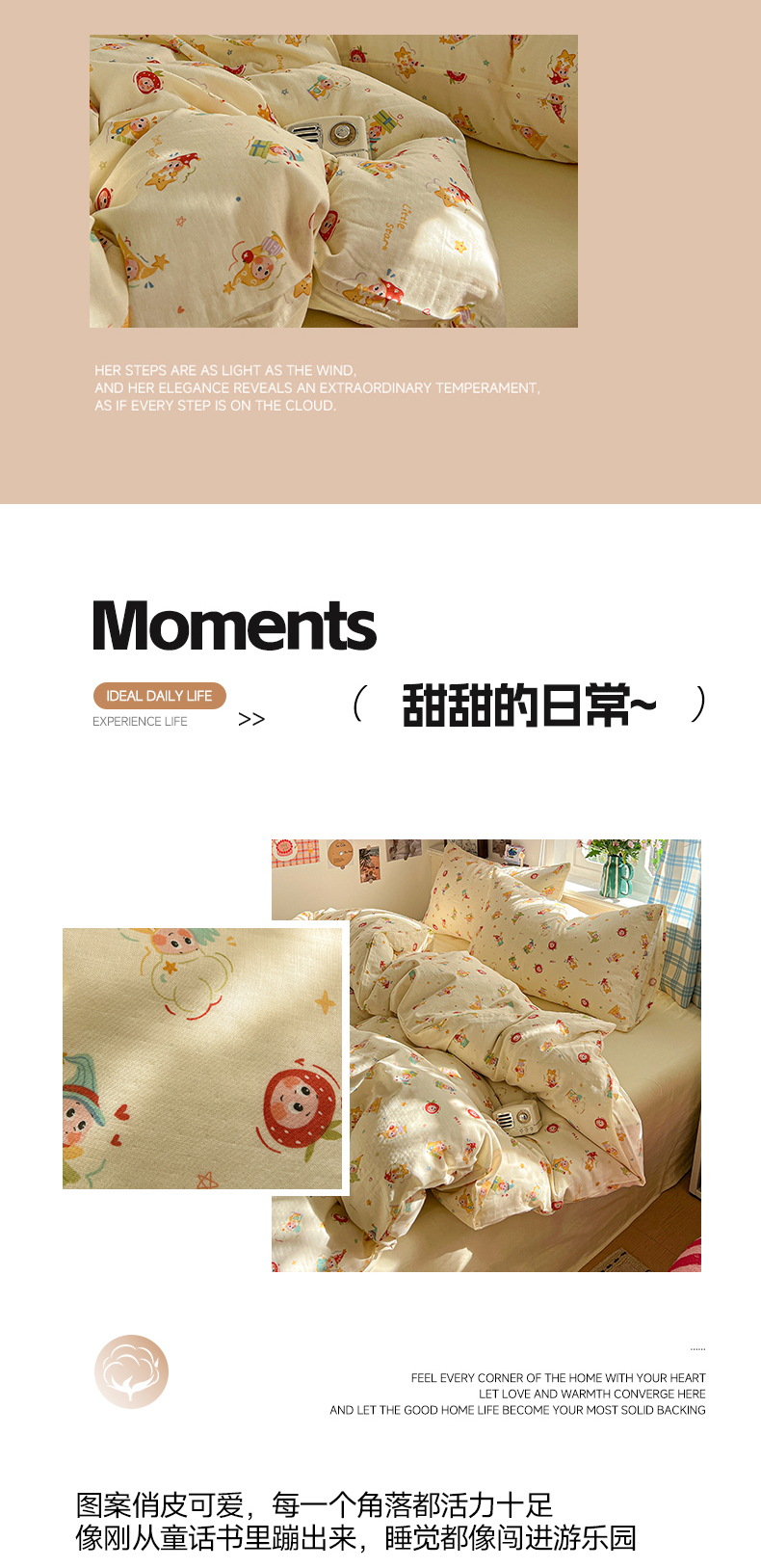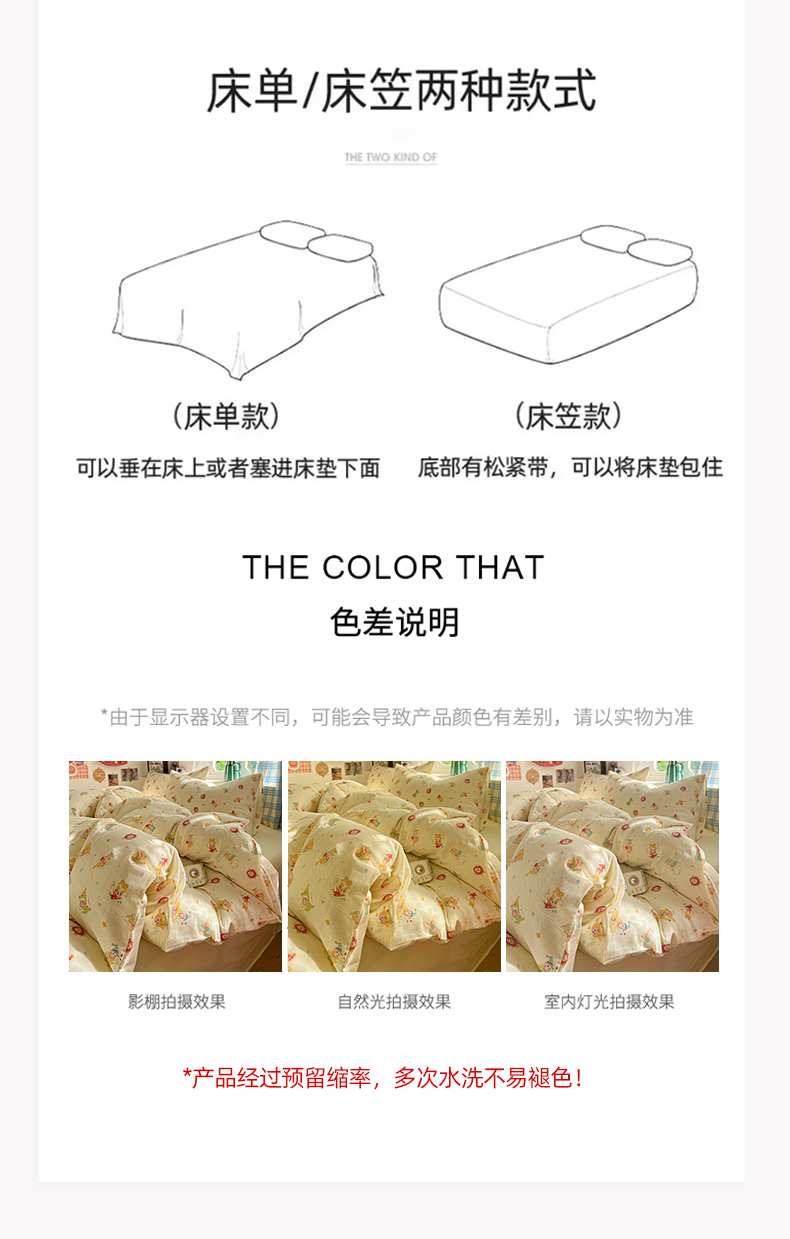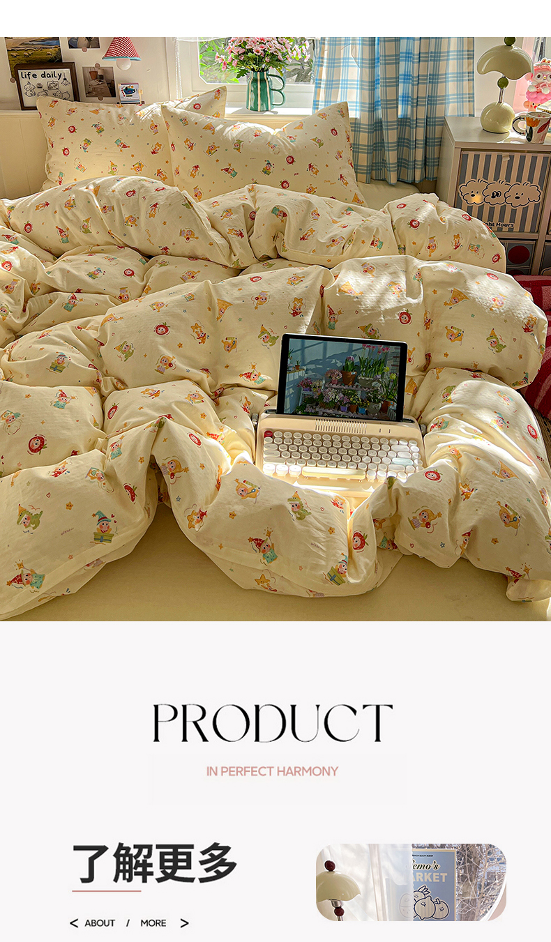 当前位置: 91家纺网 > 商品网购 > 床品套件 > 四件套 > 全棉普通四件套 > 焱博家纺 2026新款A类全棉双层纱系列四件套 星仔软糖
