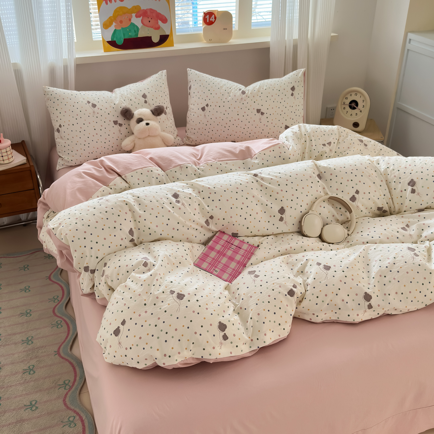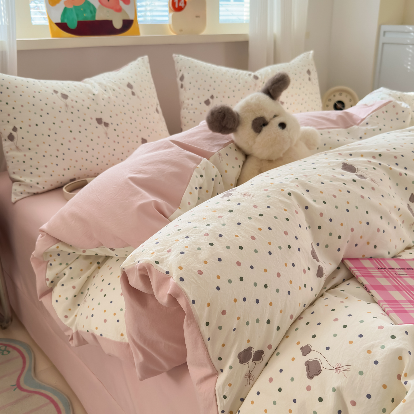 德比尔斯 2026新款古法水洗仿棉云感棉小布袋四件套 波点气球