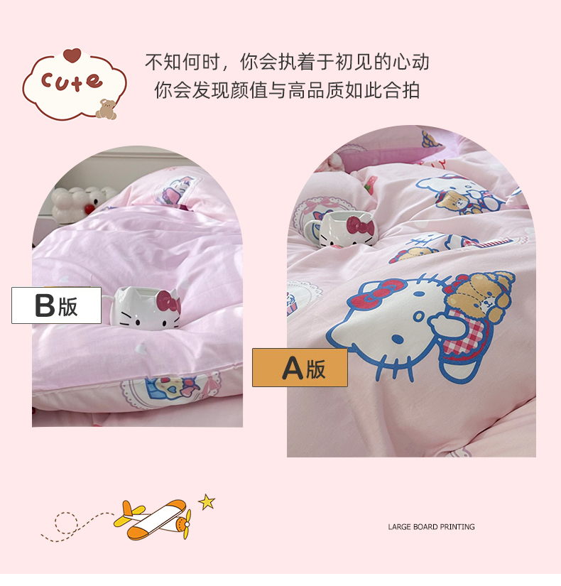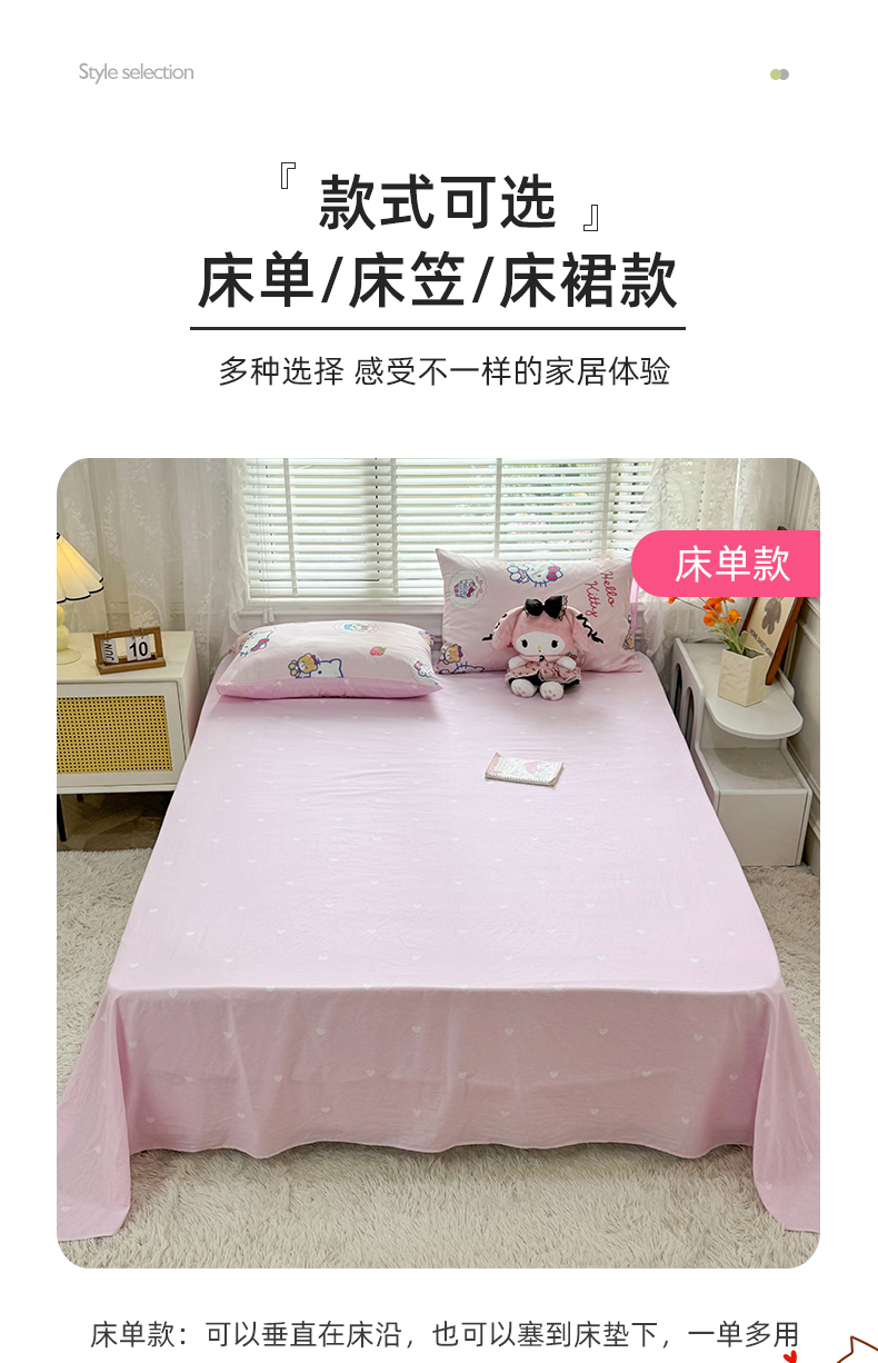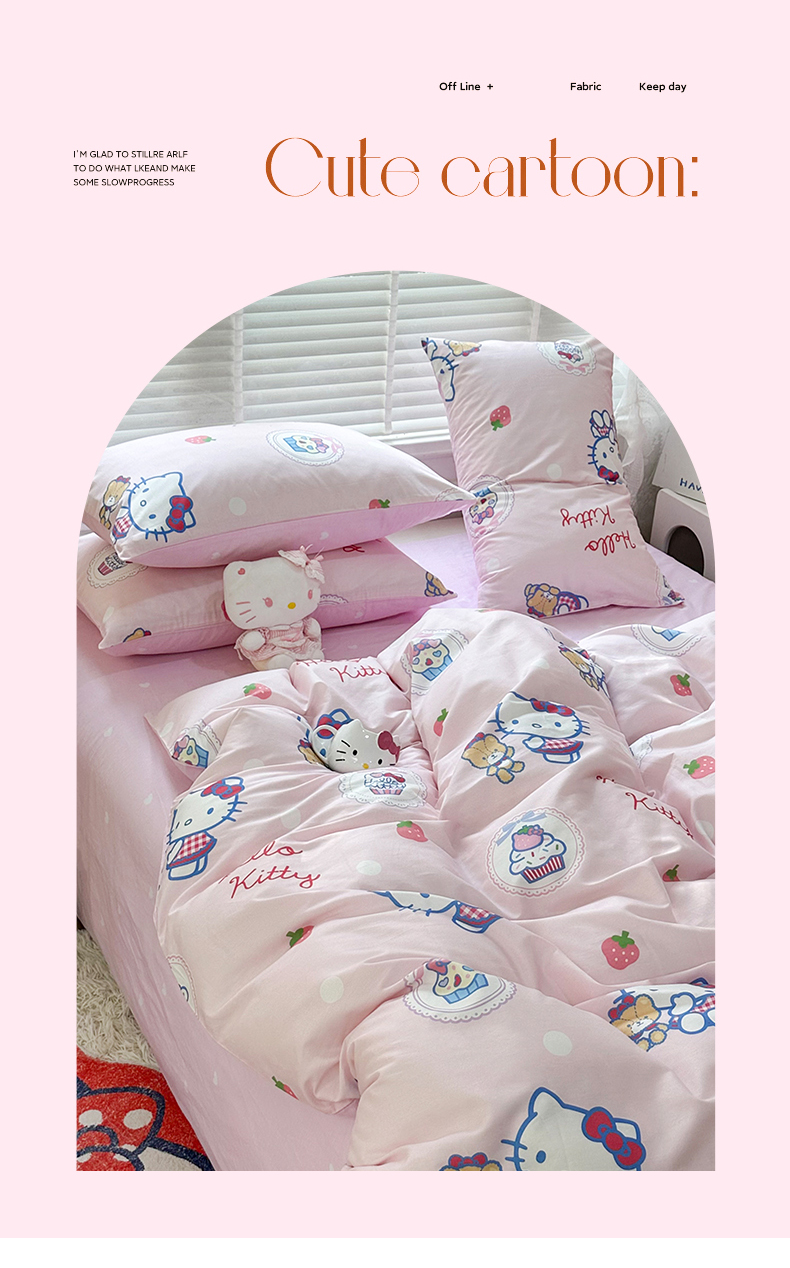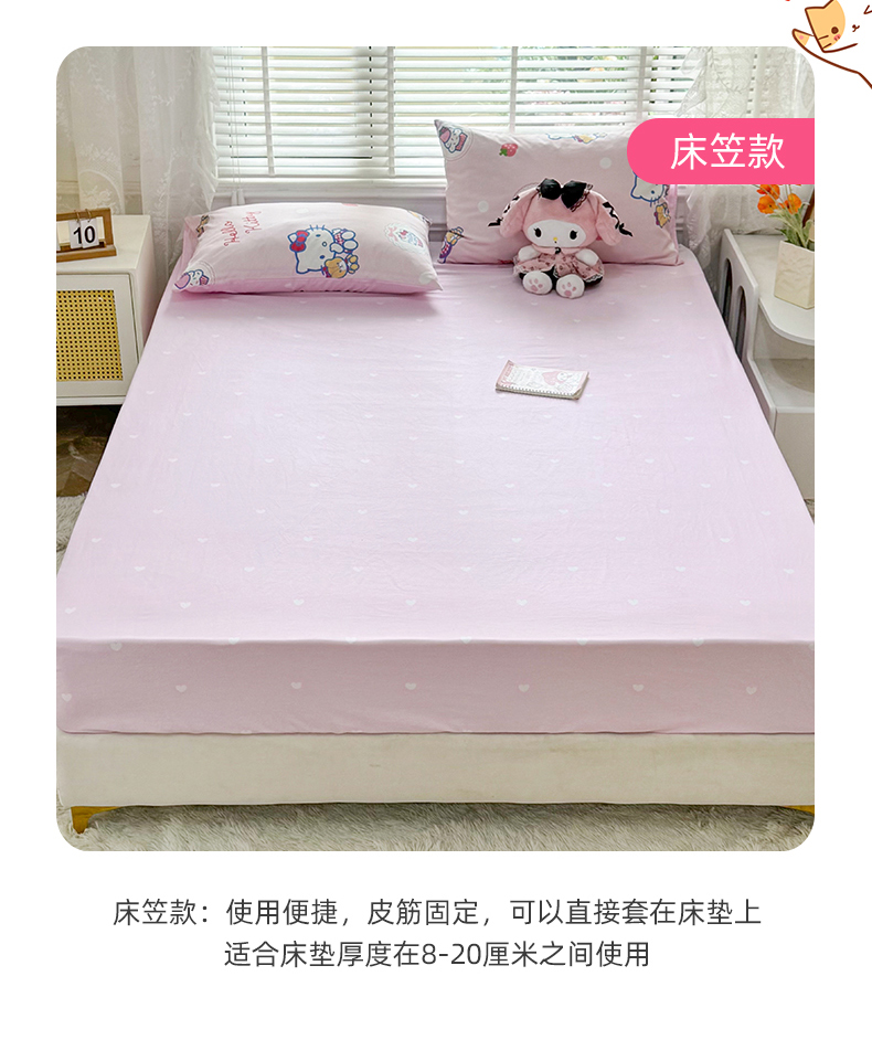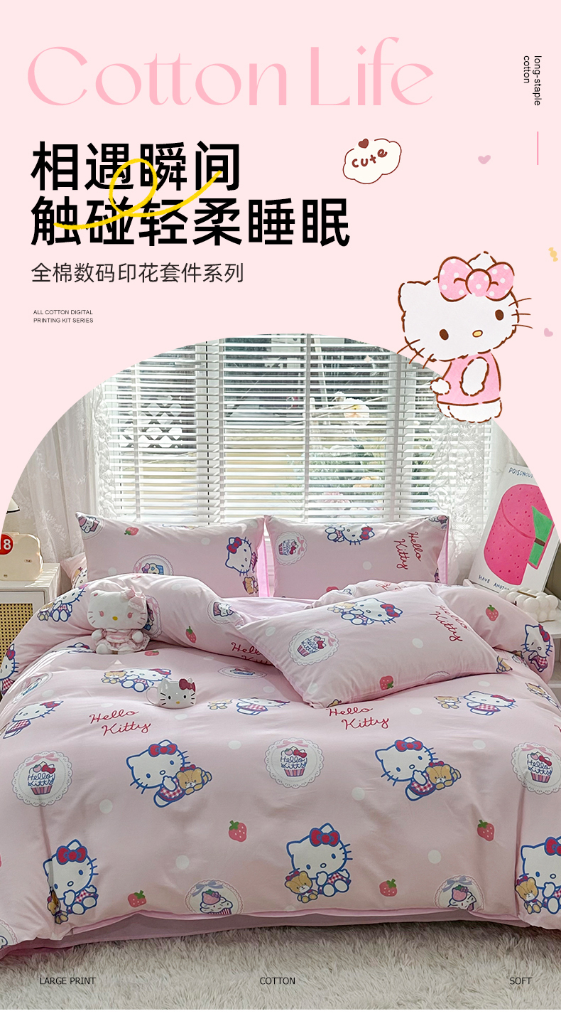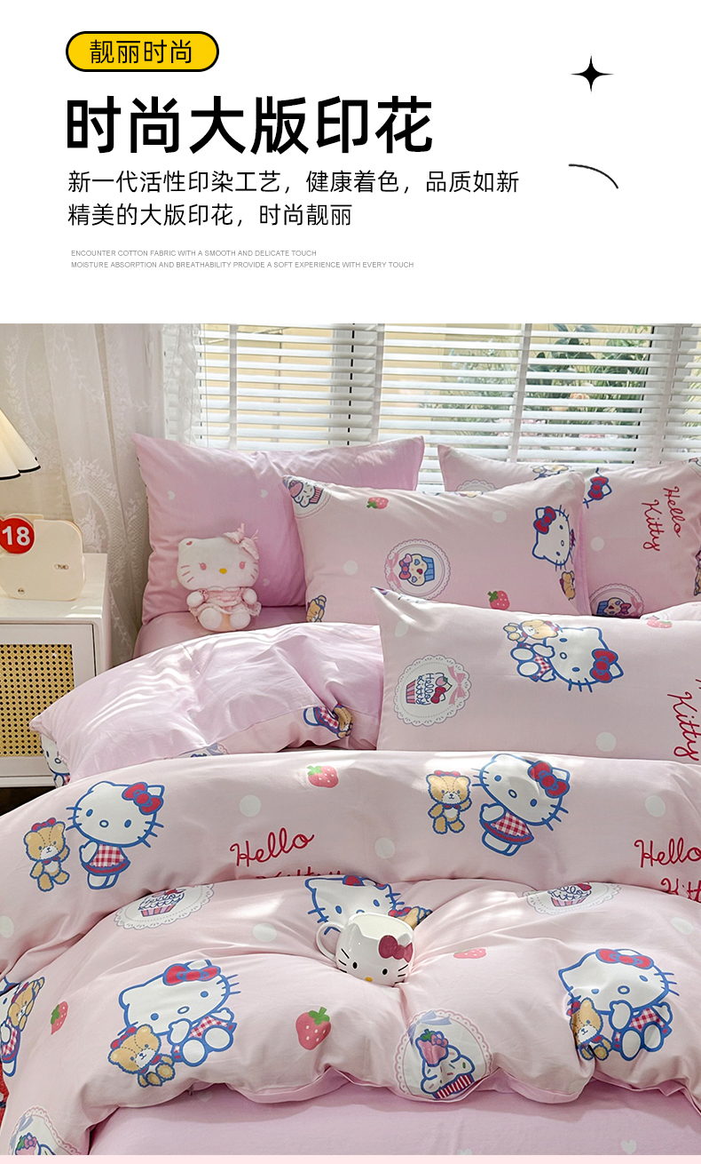 当前位置: 91家纺网 > 商品网购 > 床品套件 > 四件套 > 全棉普通四件套 > 玉元坊 2026新款正版授权三丽鸥系列全棉纯棉床单四件套学生三件套-凯蒂猫系列 KT和熊粉【简约款】