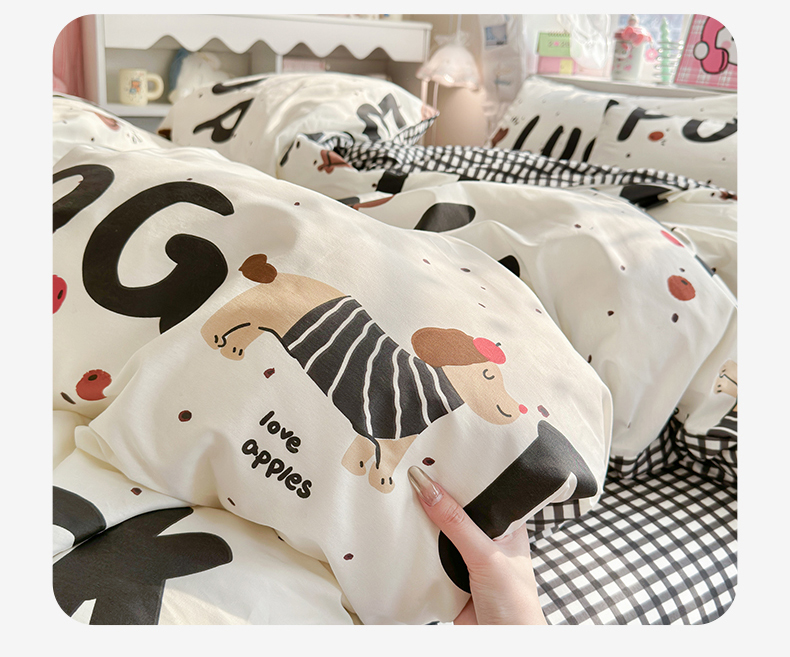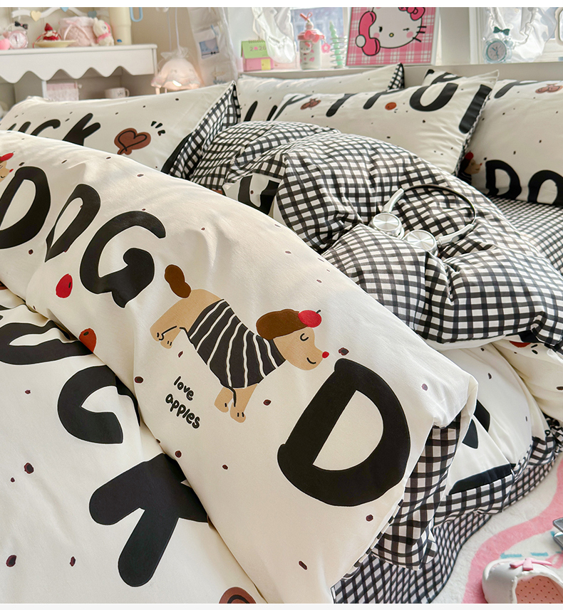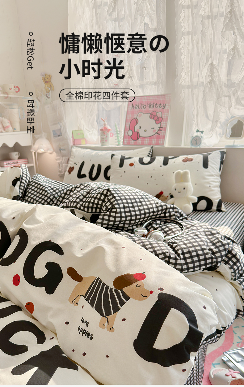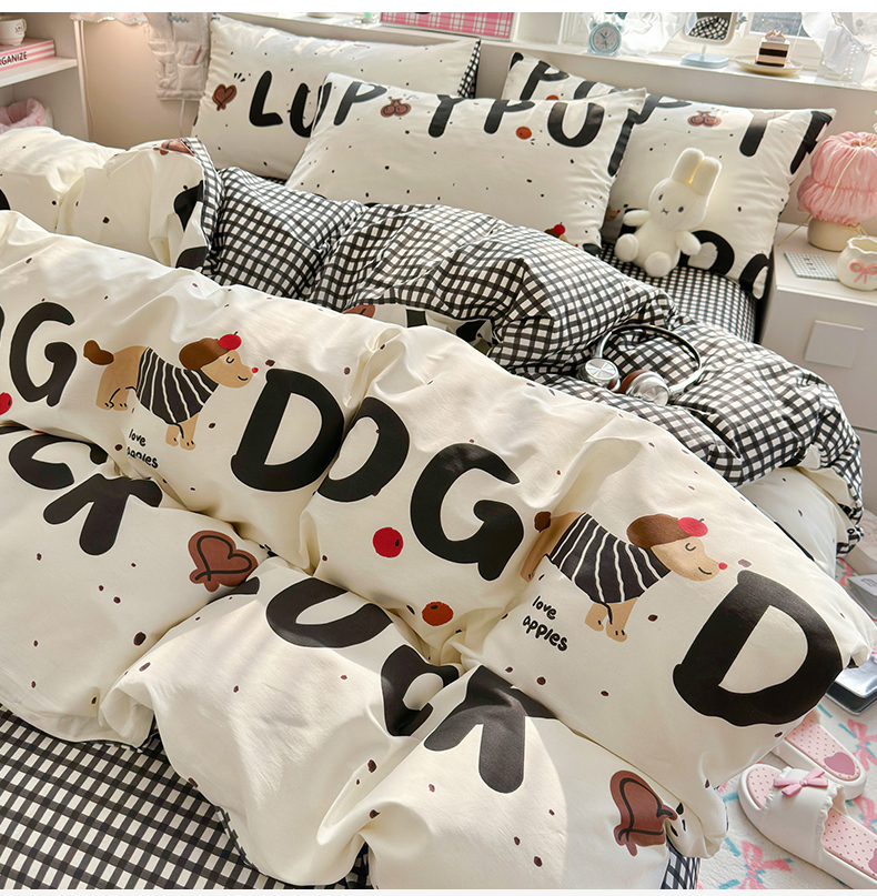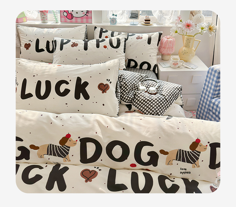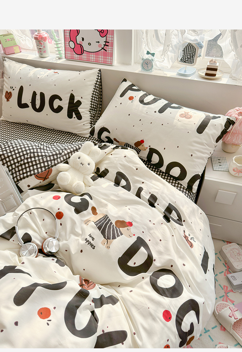 当前位置: 91家纺网 > 商品网购 > 床品套件 > 四件套 > 全棉普通四件套 > 名兮家居 2026跑量款全棉印花四件套 幸运字母狗