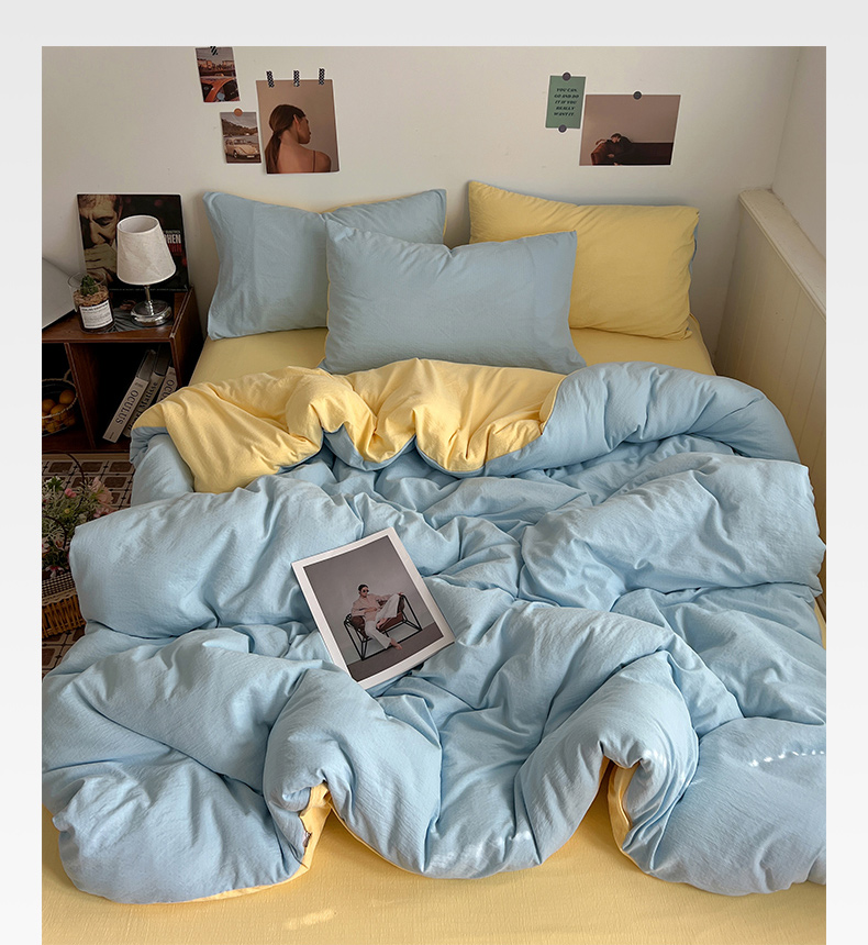 当前位置: 91家纺网 > 商品网购 > 床品套件 > 四件套 > 双层纱四件套 > 花伞家居 2026新款简约纯色双拼双层纱高克重水洗棉四件套 涧石蓝