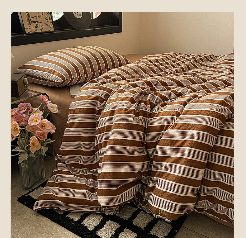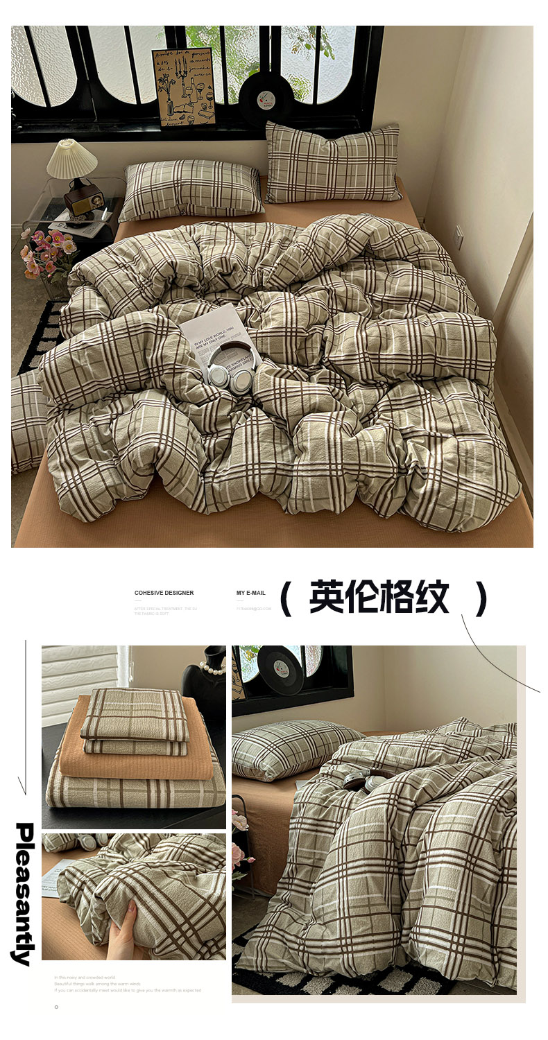 (总)花伞家居 2026新款老钱学院风毛巾绣双层纱加厚四件套,复古棕竖条-瑞特,卡其豹纹-露丝,热情豹纹-露丝,日系条纹-瑞特,苏格兰红格-露丝,英伦格纹-瑞特,中古森系-露丝