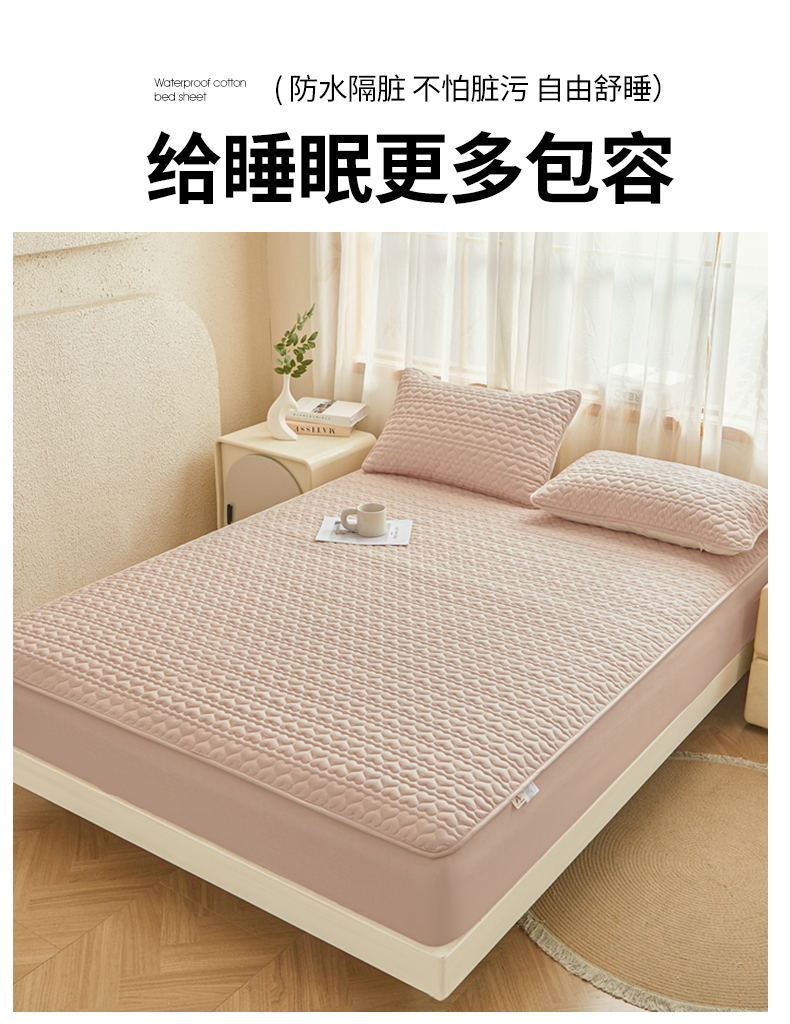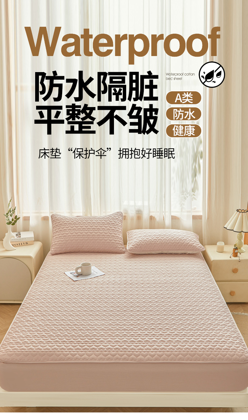 邵依家纺 2026新款原棉防水床笠系列 爱心卡其