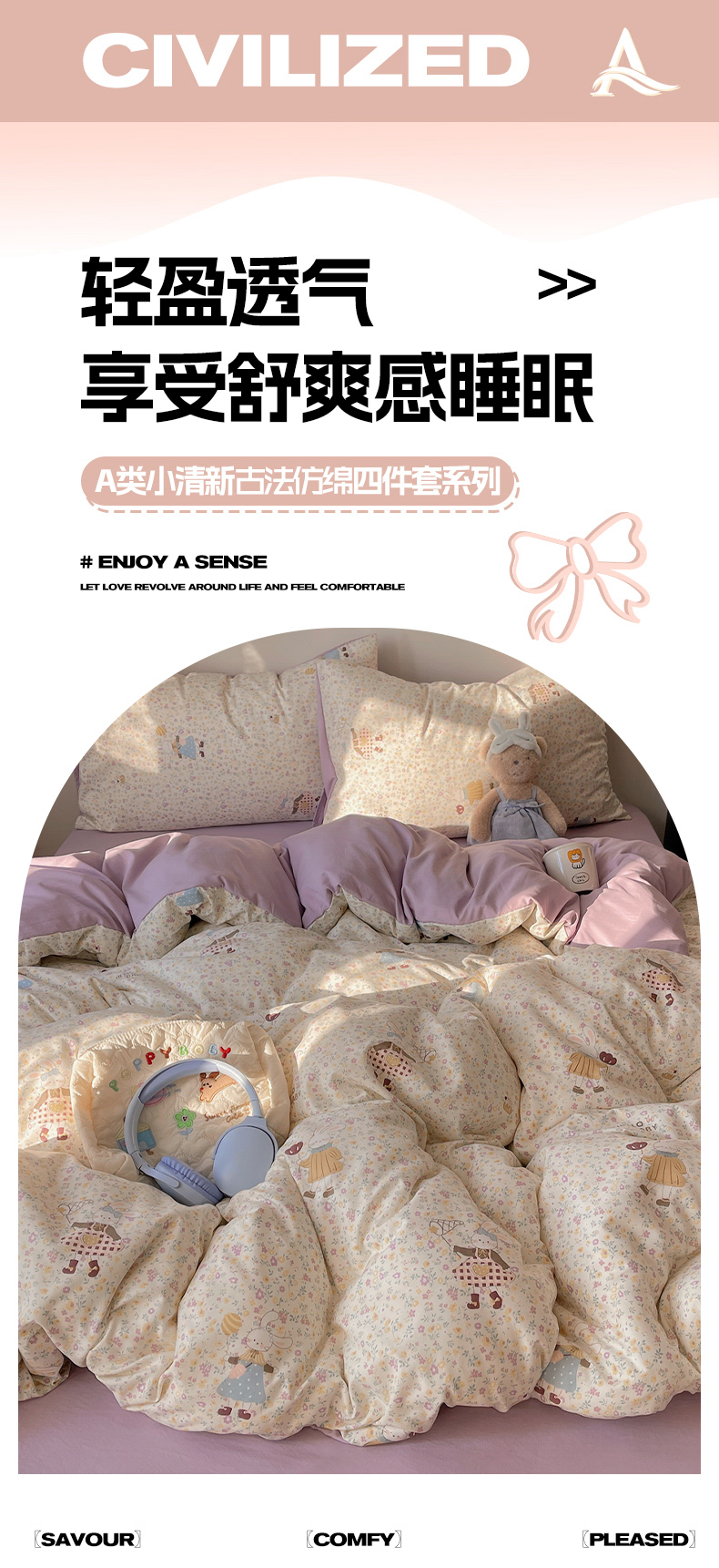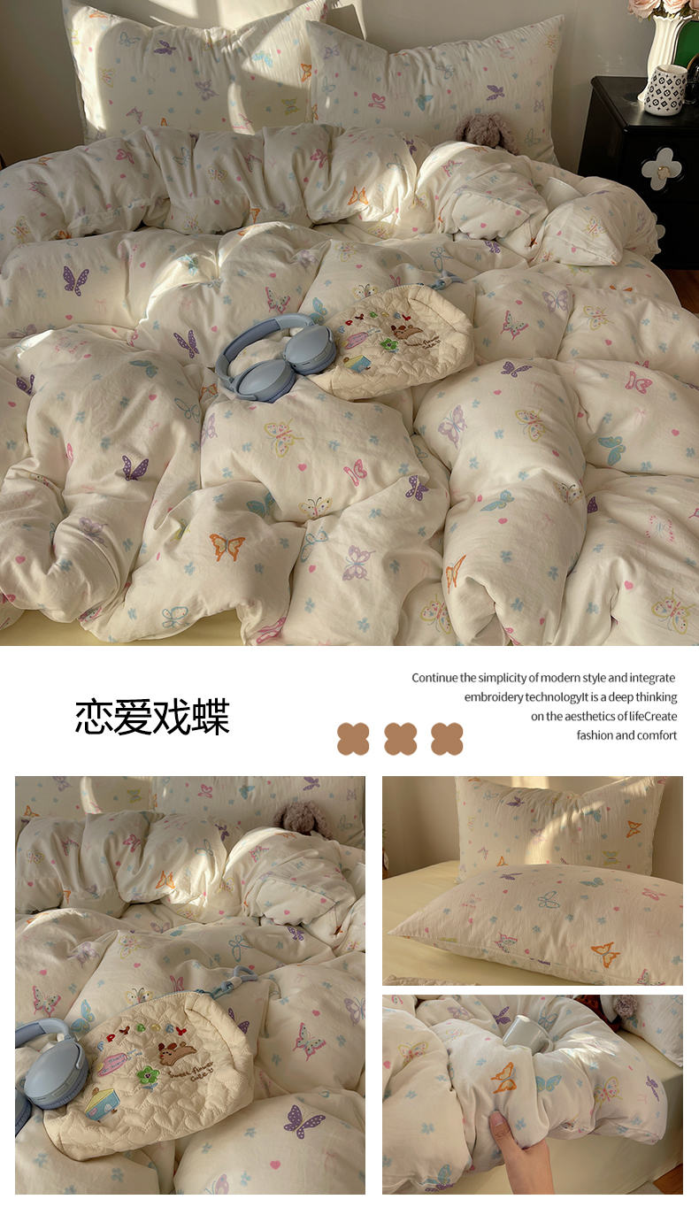 当前位置: 91家纺网 > 商品网购 > 床品套件 > 四件套 > 水洗棉四件套 > 初念 2026新款A类小清新古法简约水洗棉四件套 恋爱戏蝶