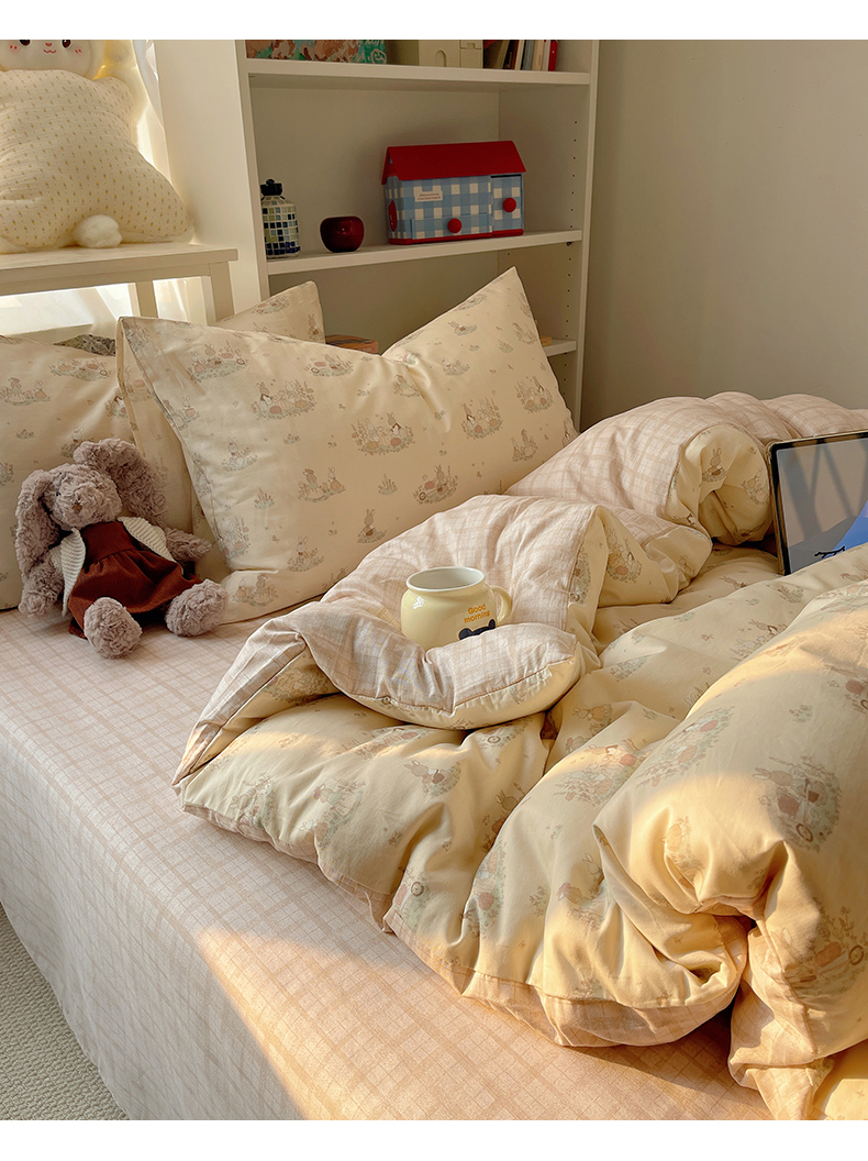 (总)耀悦家纺 2025新款A类12868纯棉四件套,花园兔兔,周末