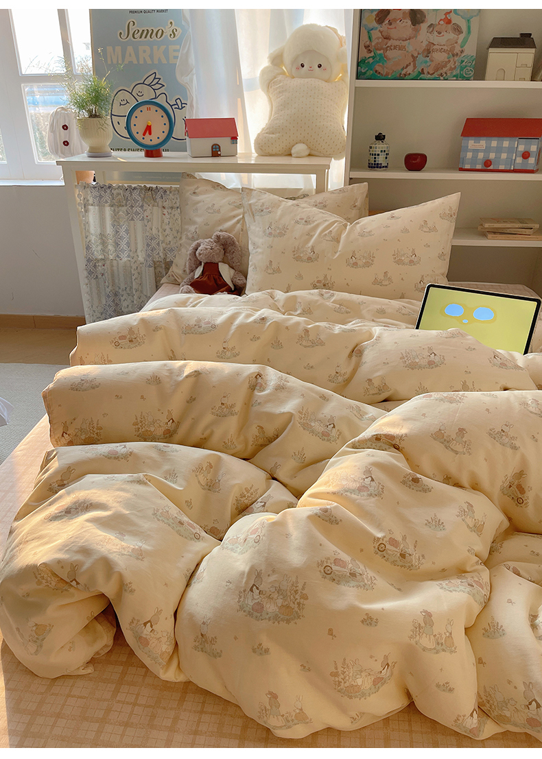 当前位置: 91家纺网 > 商品网购 > 床品套件 > 四件套 > 全棉普通四件套 > 耀悦家纺 2026新款40支a类全棉纯棉小清新卡通ins风博主风四件套 南瓜田园兔