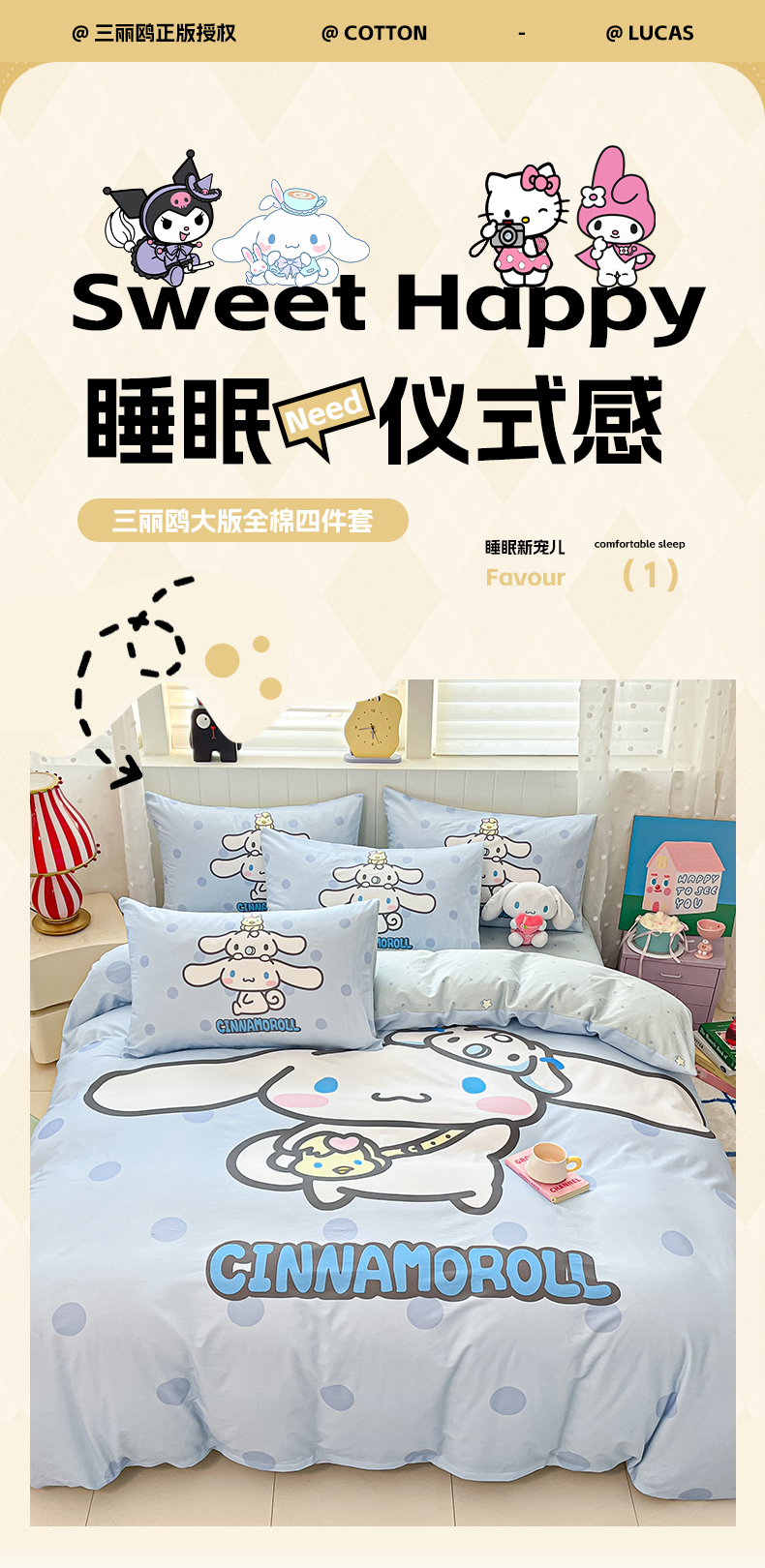 当前位置: 91家纺网 > 商品网购 > 床品套件 > 四件套 > 全棉普通四件套 > 博雅 2026春夏新款三丽鸥新花型全棉纯棉大版印花四件套 全棉大版-圈圈玉桂狗